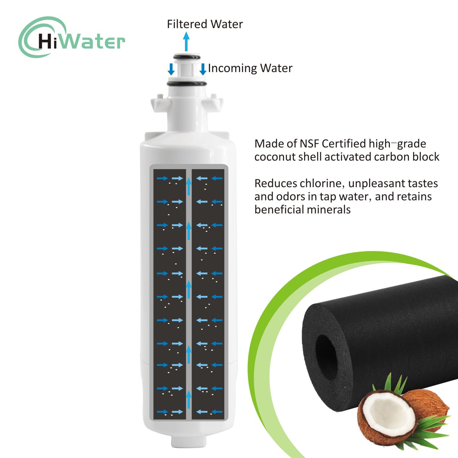 [REMARKABLE PERFORMANCE]: Only use premium coconut shell sintered activated carbon block, significantly reduces chlorine taste & odor and 12 contaminants including Chlorine, cysts, chloramine, lead, Lindane, Endrin, Atrazine, Carbofuran, Benzene, TTHM, particulates ClassⅠ, Turbidity. Also, it persisted beneficial minerals.