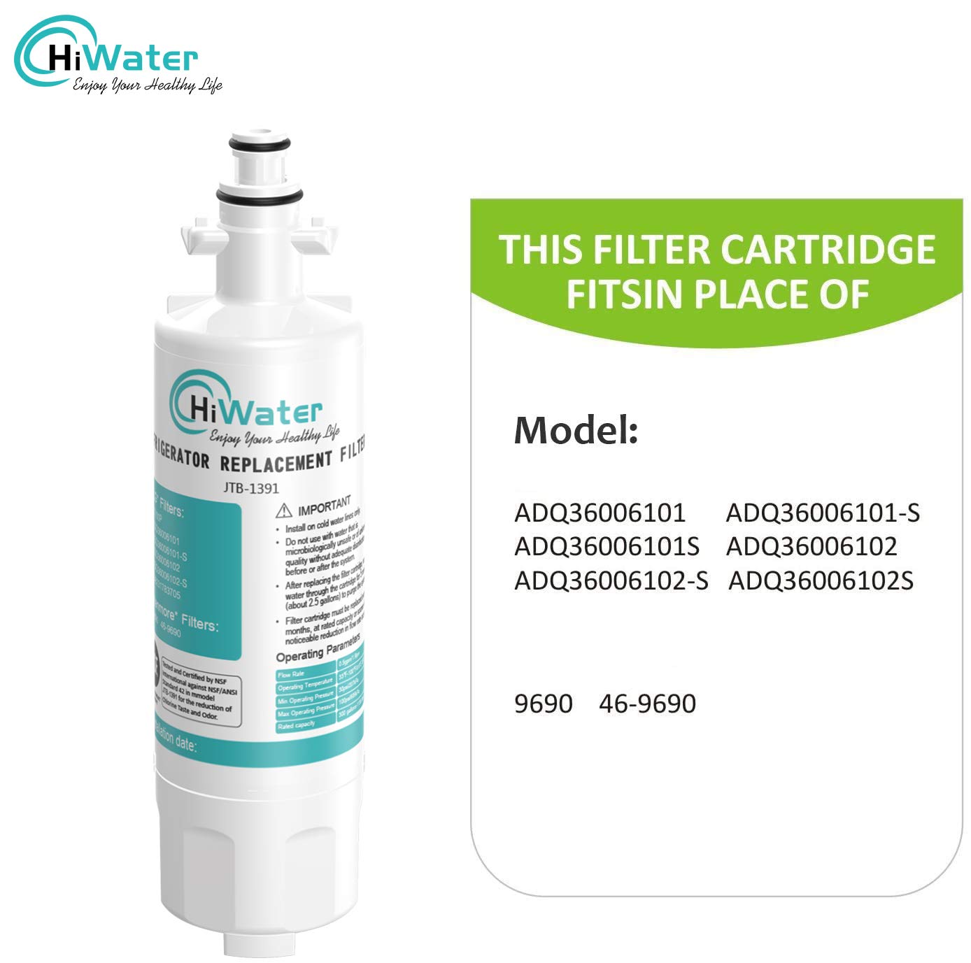 HiWater LT700P Refrigerator Water Filter Replacement for ADQ36006101 LG LT700P, KENMORE 469690, 9690, ADQ36006102 lfx21976st WSL-3 LT700PC LFXC24726D LFXS29766S Pack of 3