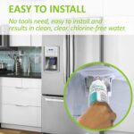 Twist and lock design for no tools to replace cartridge inside refrigerator, and it only take less than one minute to finish replacement. You have to run at least 2.5 gallons (around 5 minutes) of water through the system to flush out the lines before drinking.