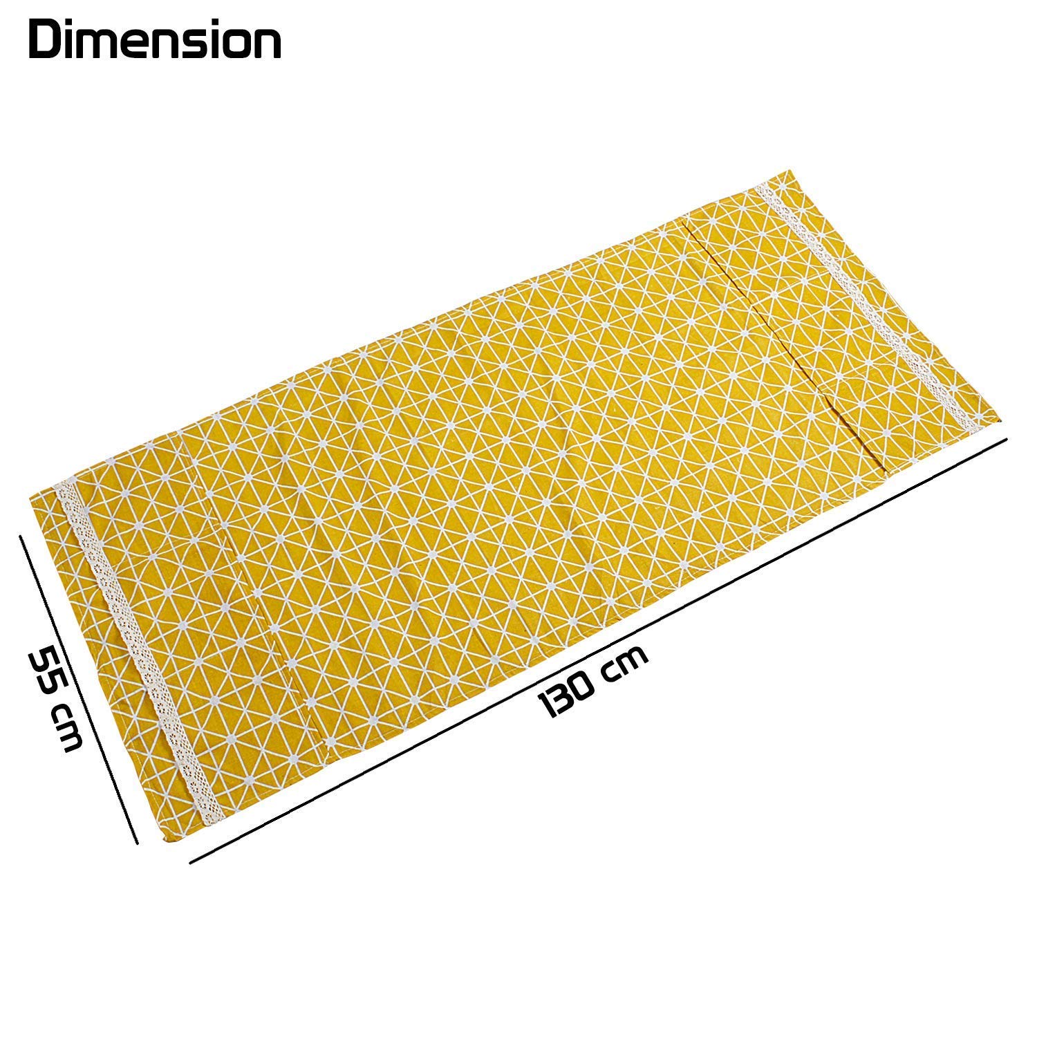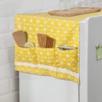 Size: 130 x 55 cm refrigirater dust cover. Each Pocket Size: 20 x 14 cm. Color – Yellow.
