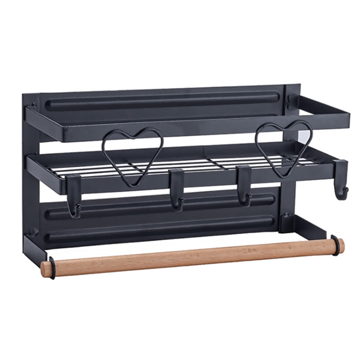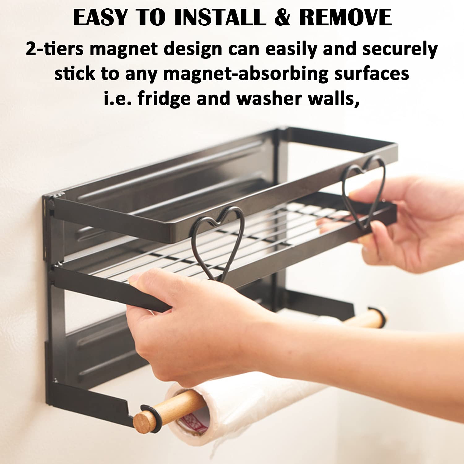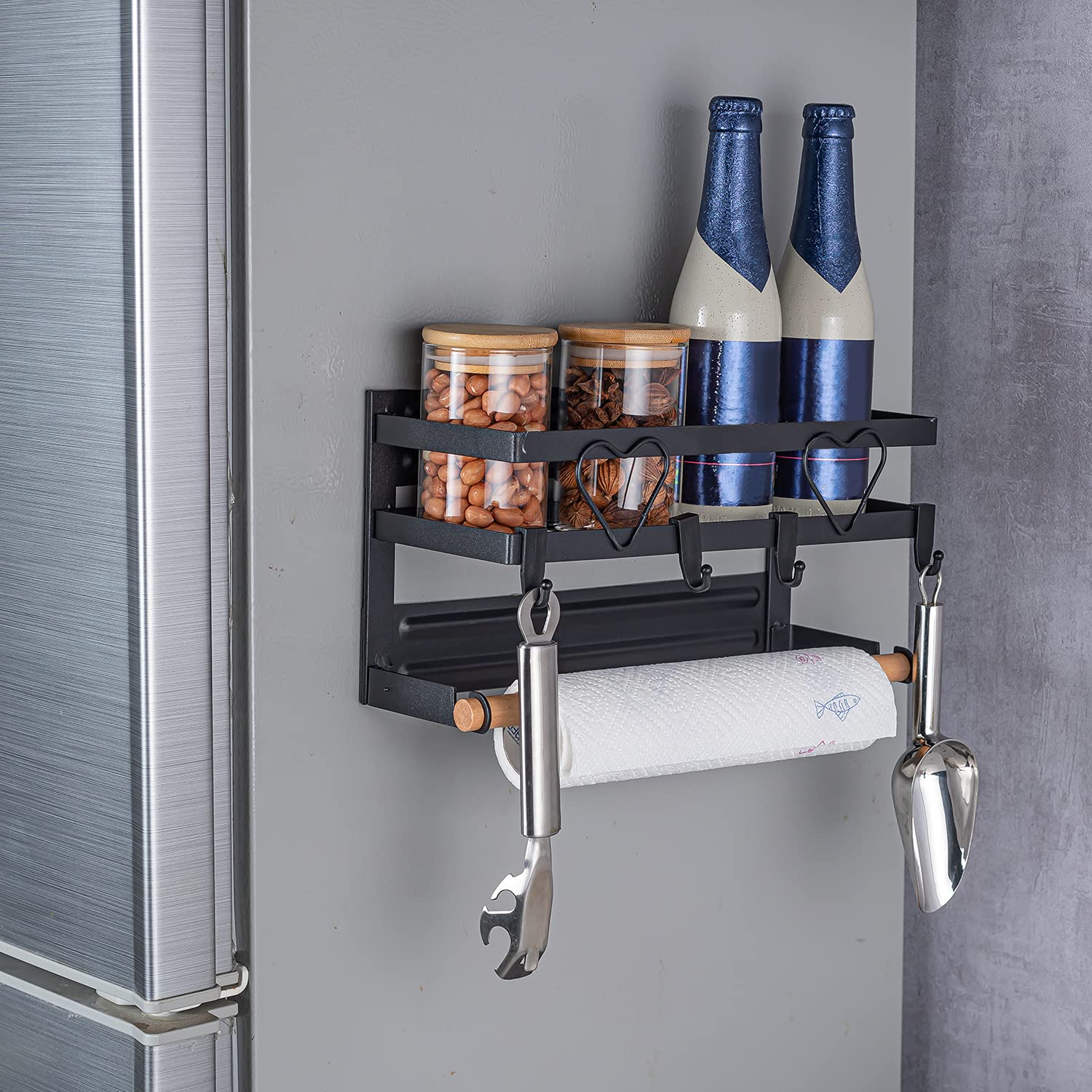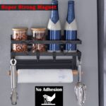 HOKIPO Metal Magnetic Shelf for Fridge Spice Wall Floor Mount Rack Organizer for Refrigerator with Napkin Paper Towel Holder and 4 Hooks (KO-AR-3725)
