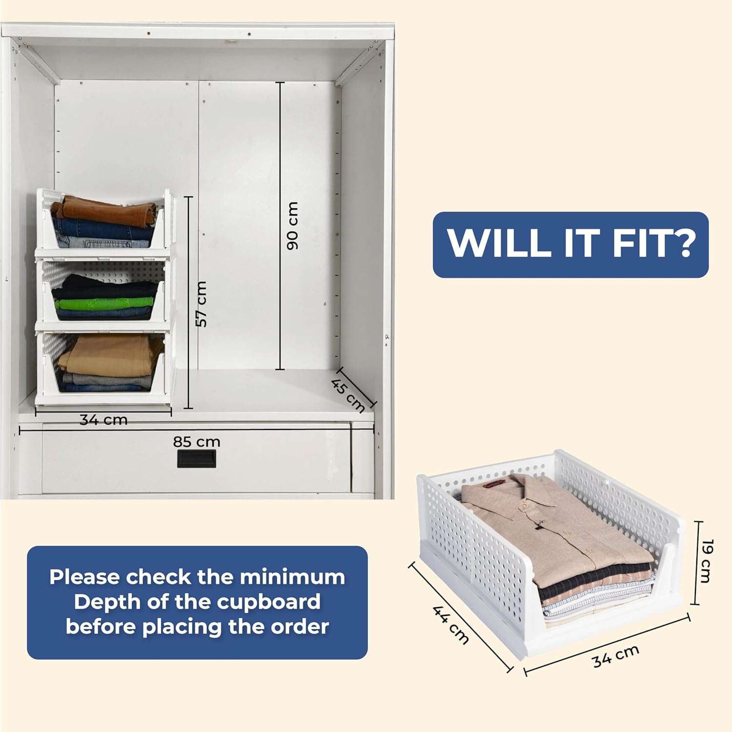 8 reviews for HomeStrap Set of 6, Stack it Up | Large Cloth Stacker | Foldable Shirt Storage Stacker for Wardrobe | Plastic Stackable Closet Organizer | White | 34L x 44W x 19H Centimeters