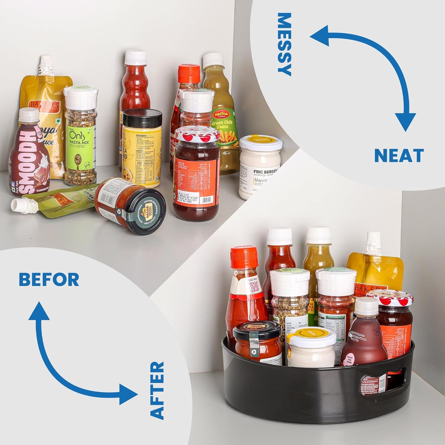 HomeWiz Multi-Purpose 360° Rotating Organizer Tray | Kitchen Accessories Items | Kitchen Organizer Rack | Kitchen Tools | Easy – Access Turntable for Spices, Storage & More | Black
