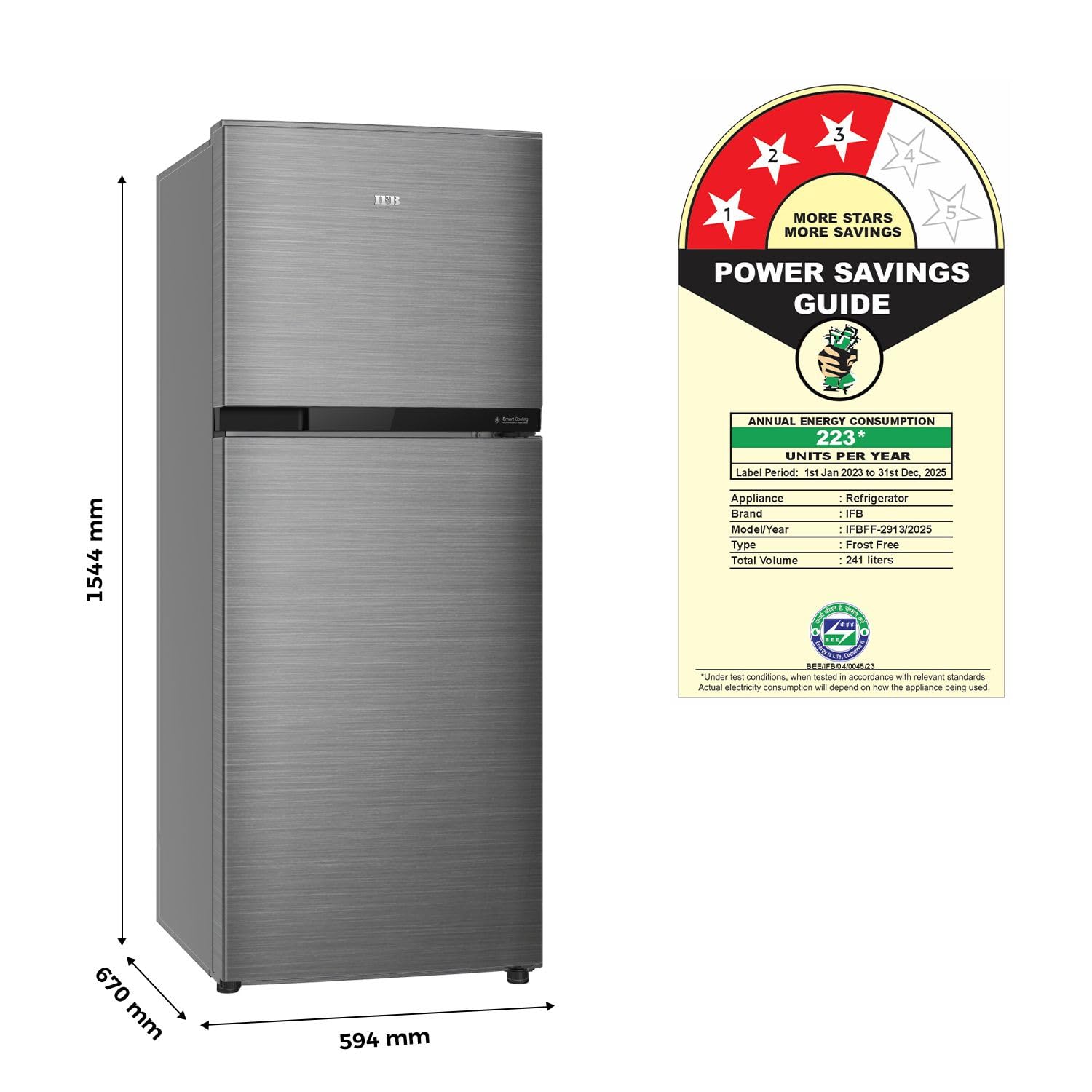 IFB 241L 3 Star Frost Free Advanced Inverter Double Door Refrigerator (Eco Cool IFBFF-2913DBSE, Brush Grey, 7 in 1 Multi Mode with 360 Degree Cooling)