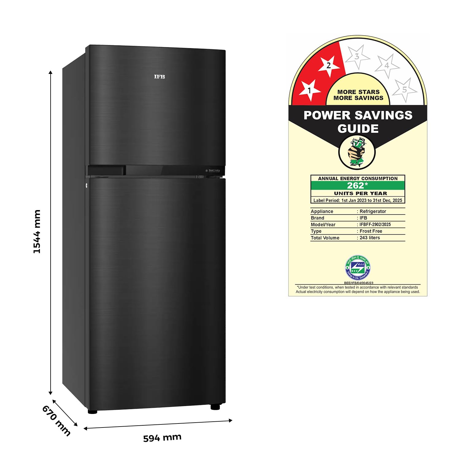 IFB Smart Choice 243L 2 Star Tru Convertible 10-in-1 Frost Free Double Door Refrigerator (IFBFF-2902NKSET, Metal Black, 360 Degree Cooling, Extraordinary Space)