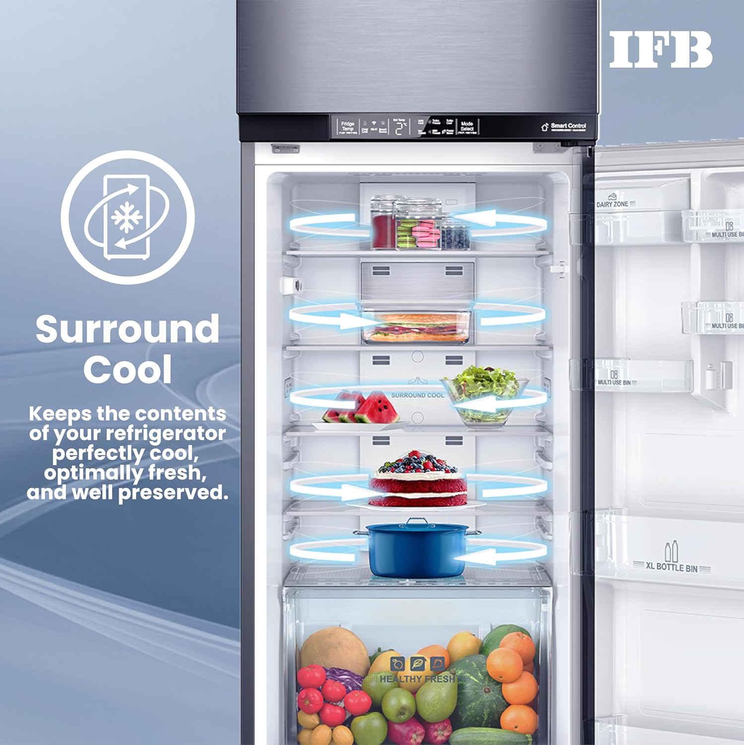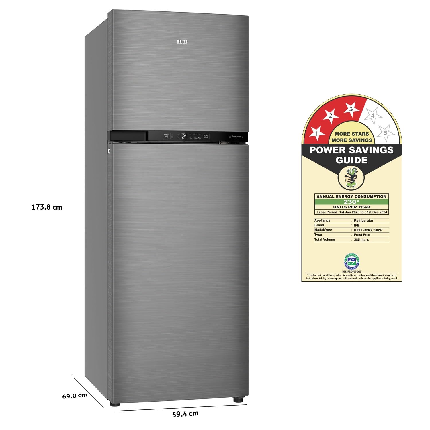IFB Smart Choice 285L 3 Star Frost Free inverter with Double Door Refrigerator (Expert-Cool IFBFF-3363IGSU, Grey) with Surround Cooling, Smart Digital Display with Smart Sense AI and Freezer LED