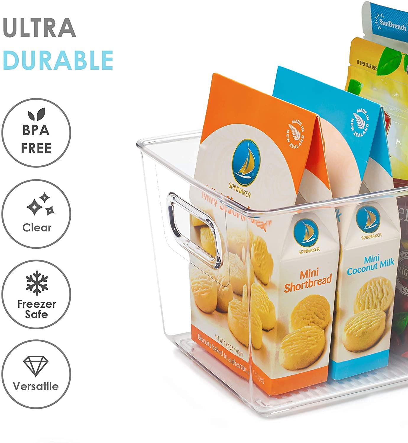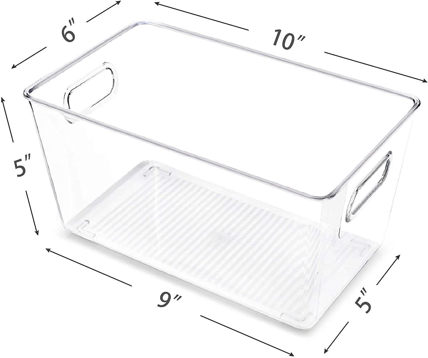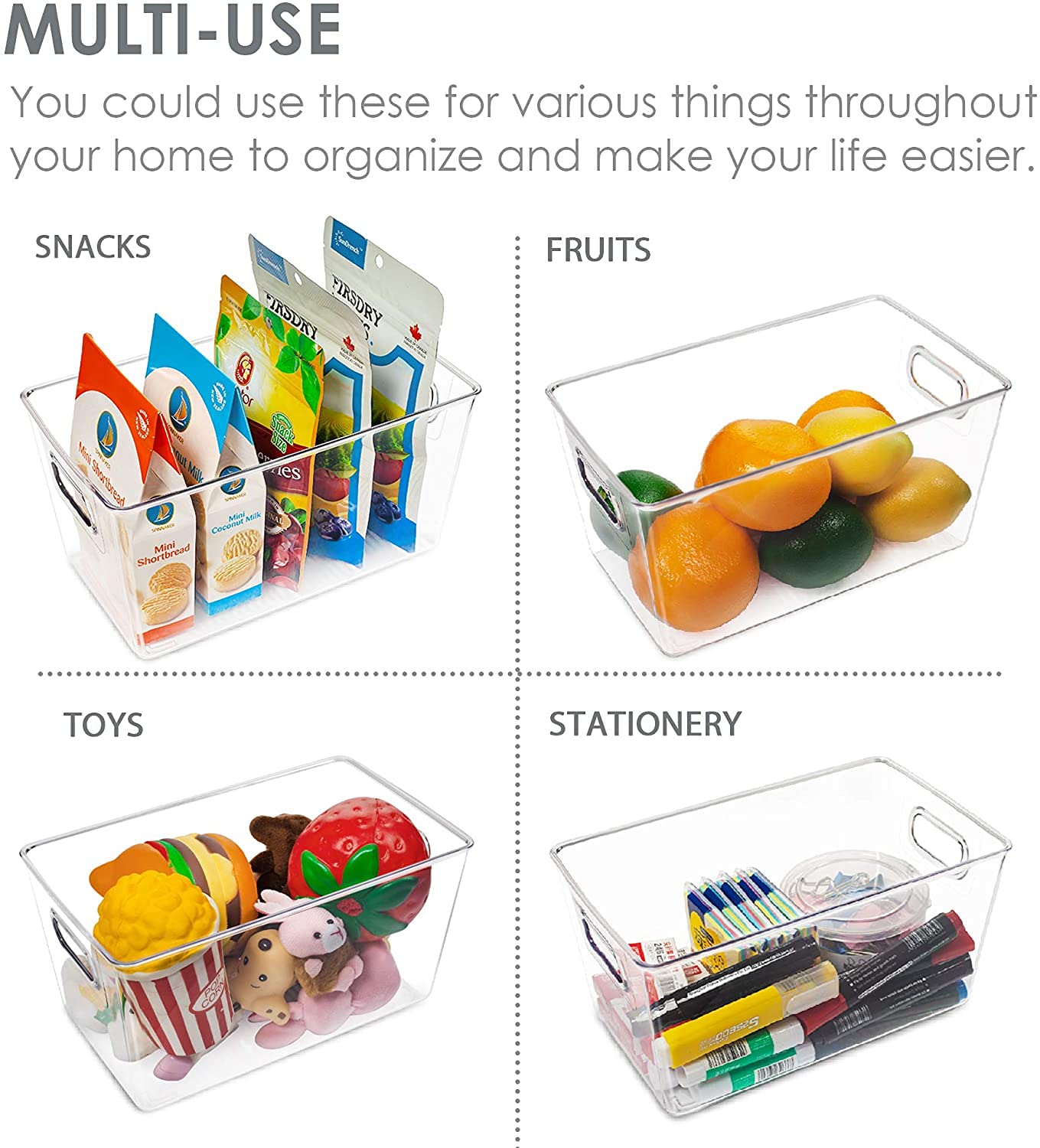 Functional and Versatile: With the perfect size, these plastic storage bins are great for cabinets and deep pantry shelves as well as inside the fridge or freezer. You can use them in any room of the home, such as in craft rooms, laundry rooms, bedrooms, bathrooms, kitchens, offices, garages, toy room, playroom and more.