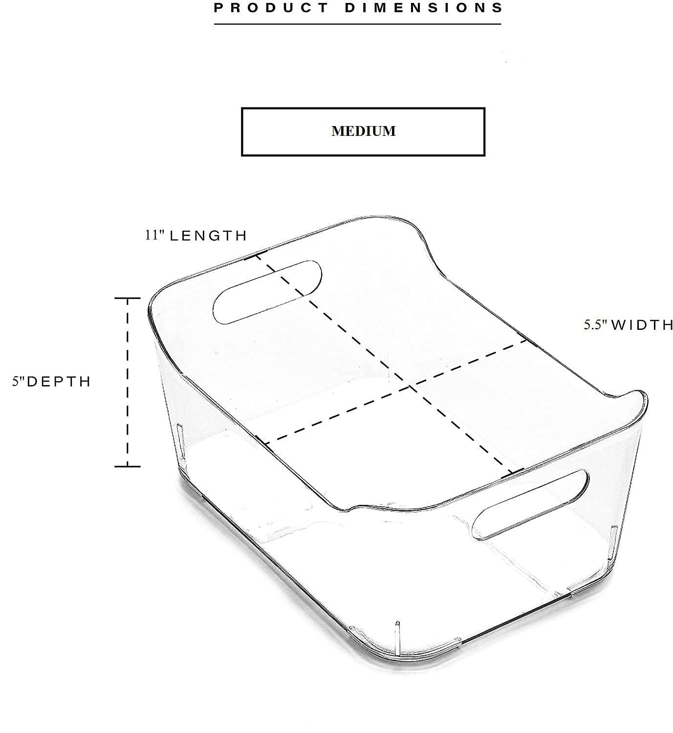 Multi-purpose storage bin great for the bathroom, kitchen, closets, garages and more. Also great for pantry, cabinets, or office storage. Stores ice cream, bagged frozen vegetables, meat, produce, condiments and much more in the Kitchen. The storage bin has cutout handles for easy lifting, sliding and transportation. Maximize kitchen space – organize fridge, freezer or pantry shelves for easy access. Pack of 02 | Dimension: 9″ L x 6.5″ W x 4.2″ H