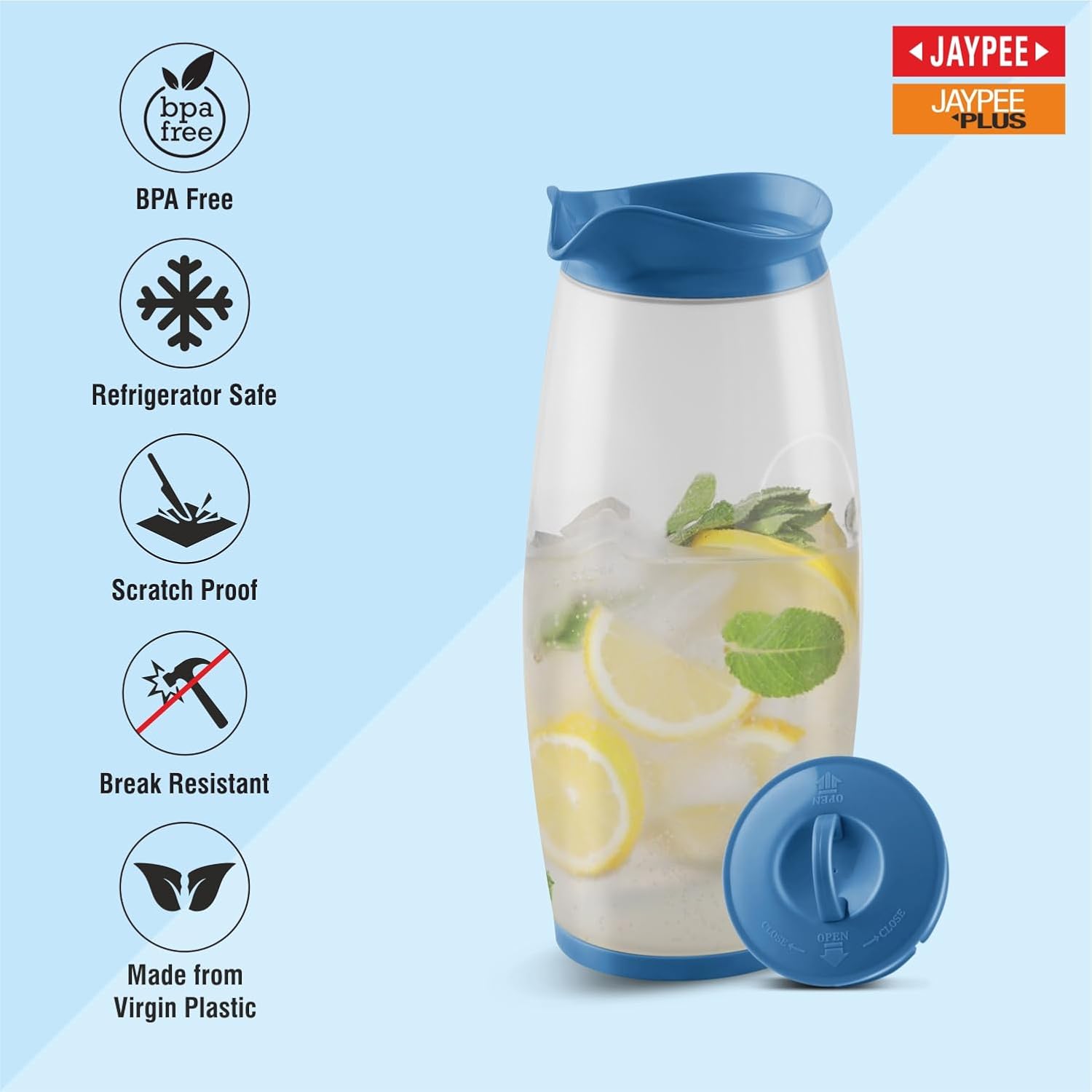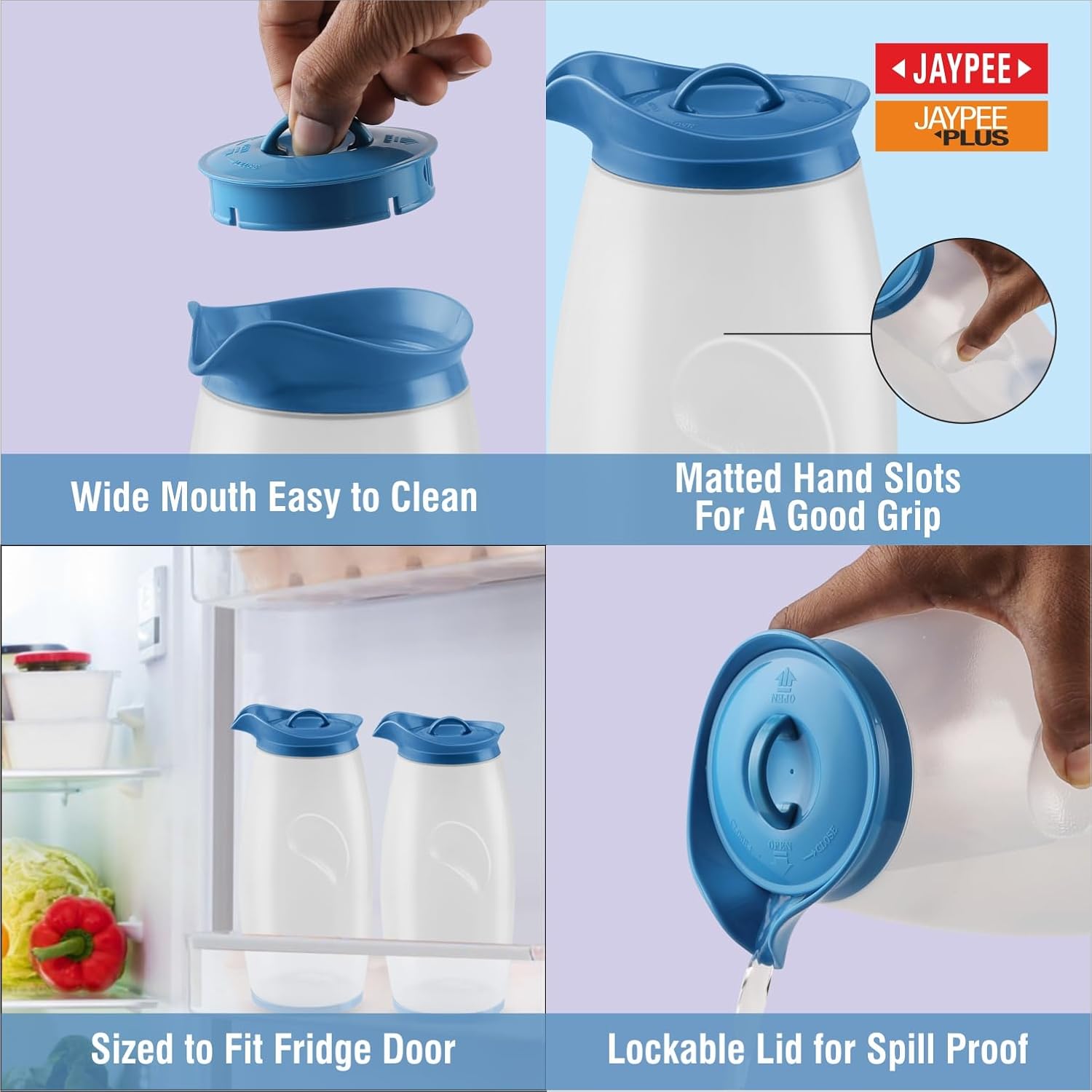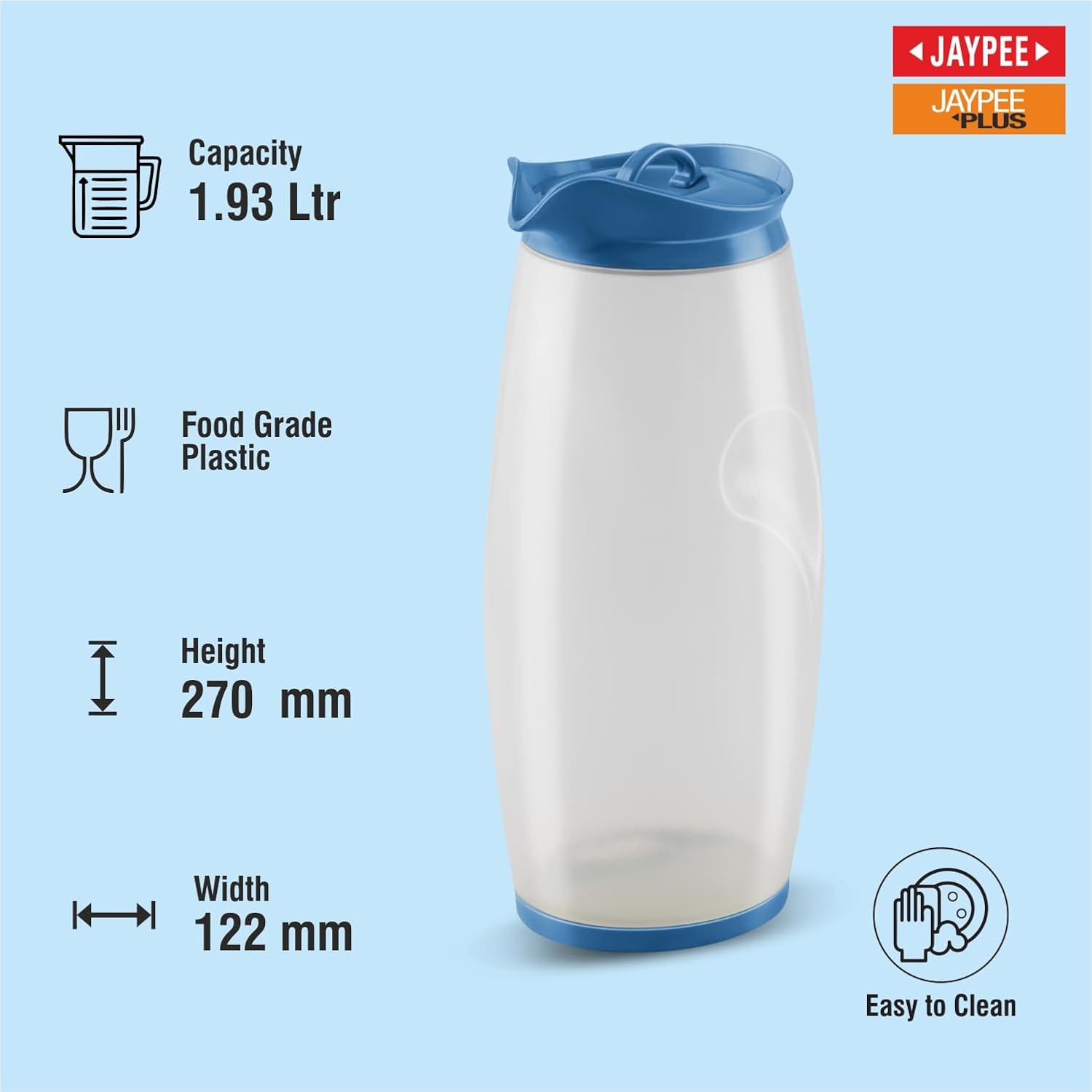 JAYPEE Hippo Unbreakable Water Jug 1.93 Litre with Lockable Lid |Wide Mouth BPA Free Food Grade Multipurpose Jug for Milk, Juice, Beverages & Kitchen,Blue