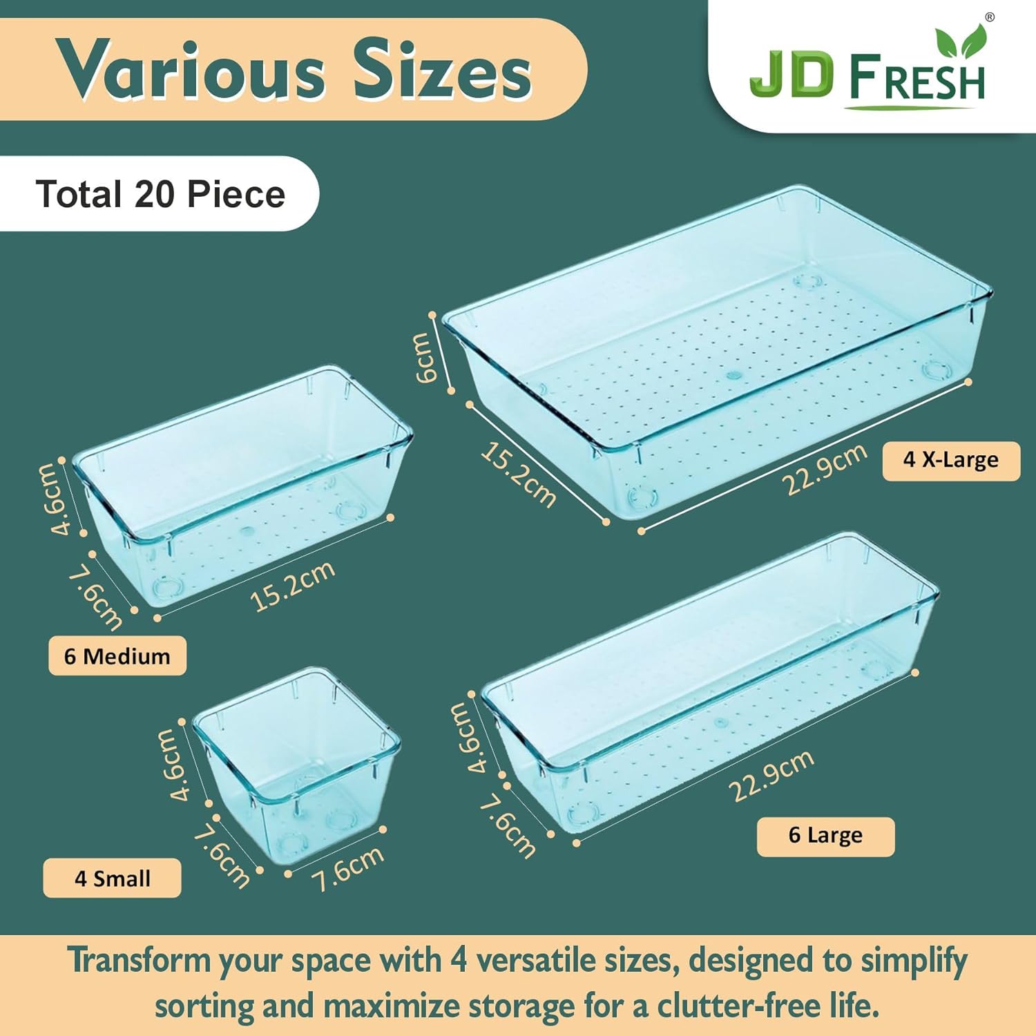 JD FRESH Polypropylene Set of 20 Drawer Organiser/Unbreakable Drawer Organizers/Dressing Table Organizer/Multi-Purpose Storage Boxes/Drawer Divider Tray for Kitchen/Bedroom/Office – (Sea-Blue)