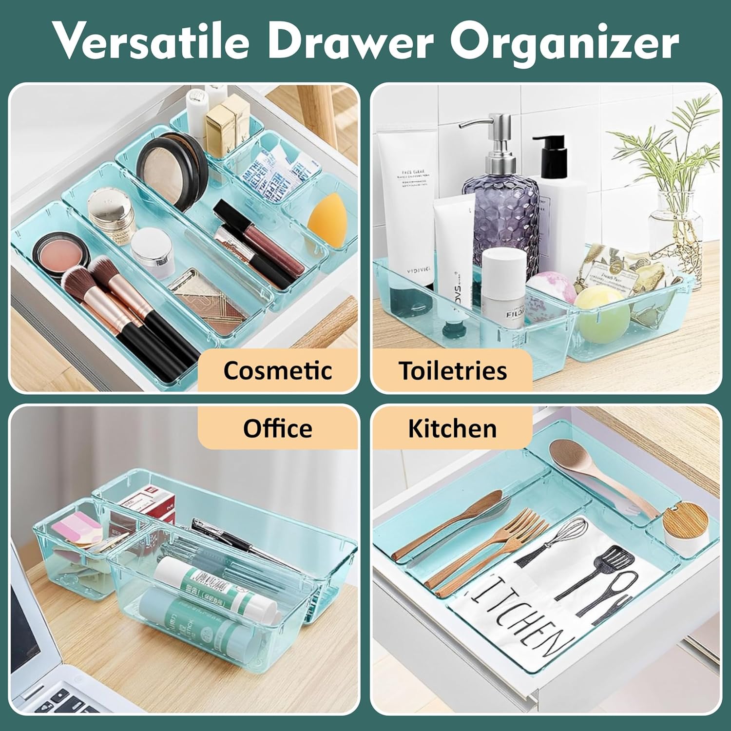 8 reviews for JD FRESH Polypropylene Set of 20 Drawer Organiser/Unbreakable Drawer Organizers/Dressing Table Organizer/Multi-Purpose Storage Boxes/Drawer Divider Tray for Kitchen/Bedroom/Office – (Sea-Blue)