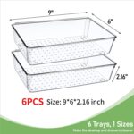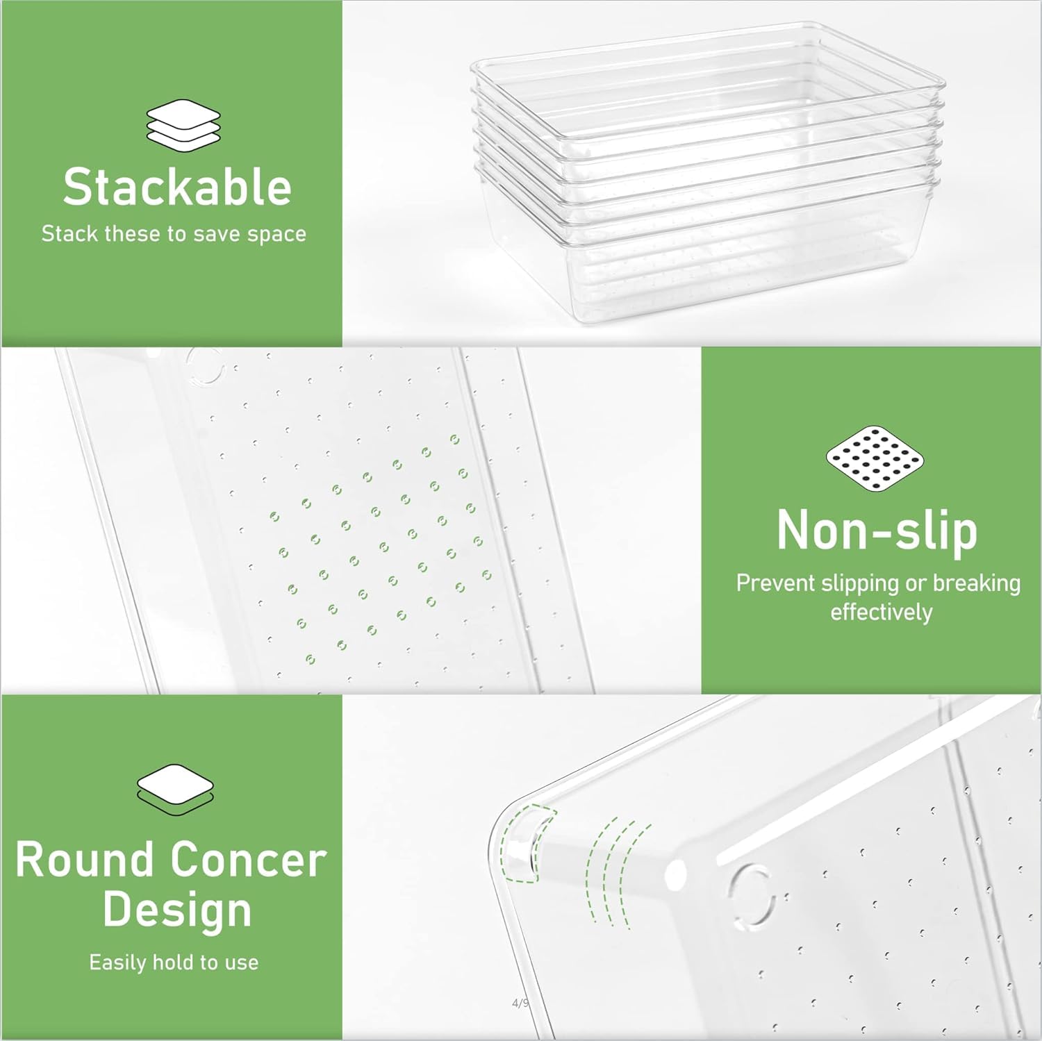 JIALTO 6-Piece Acrylic Drawer Organizer Tray Set – Non-Slip, Stackable Storage Box for Makeup, Dressing Table, Kitchen Drawer, Bathroom, Office, Vanity & Cosmetic Organization (Transparent, 9″x6″x2″)