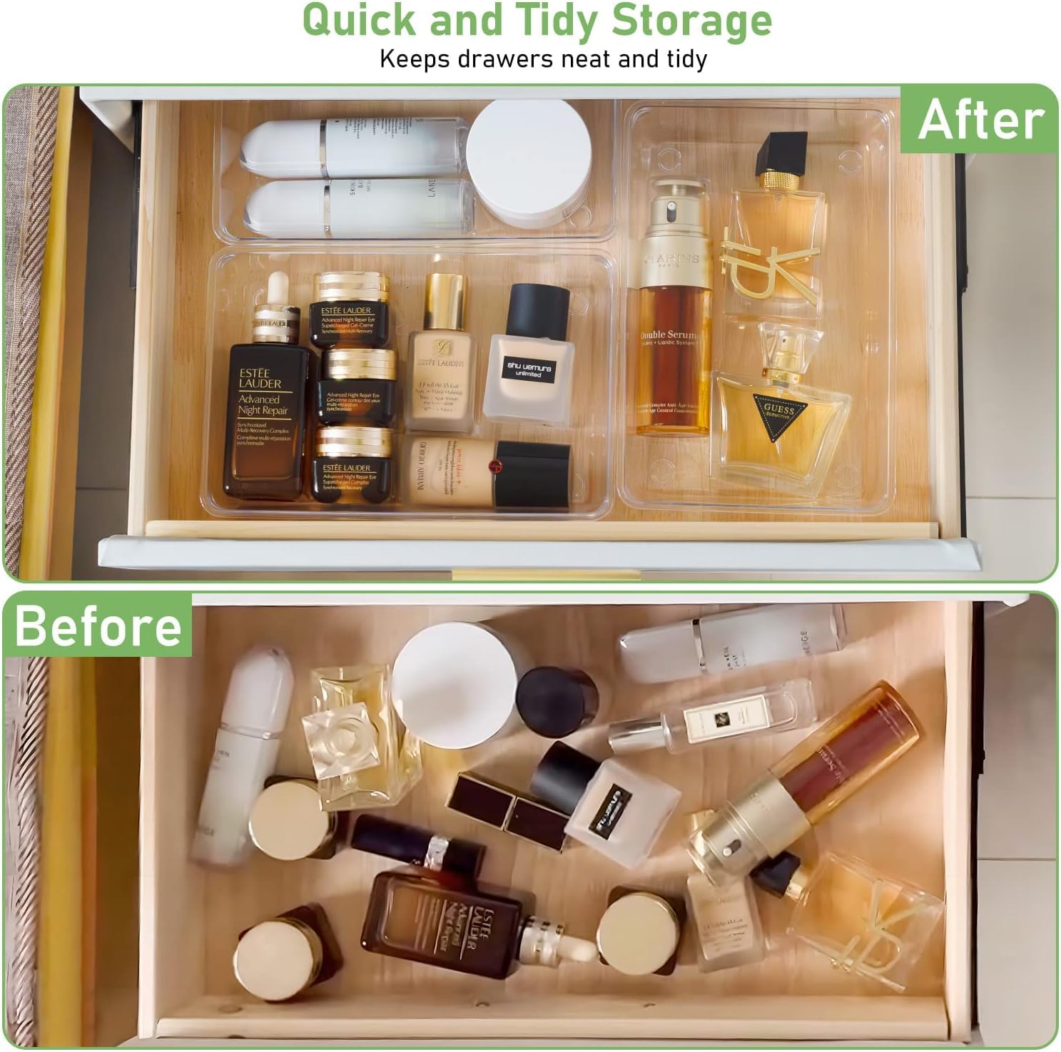 𝗡𝗼𝗻-𝗦𝗹𝗶𝗽 & 𝗦𝘁𝘂𝗿𝗱𝘆 𝗳𝗼𝗿 𝗗𝗮𝗶𝗹𝘆 𝗨𝘀𝗲: Helps prevent sliding inside drawers. Use them in your bathroom, kitchen, office, or dresser to organize everyday items without clutter.