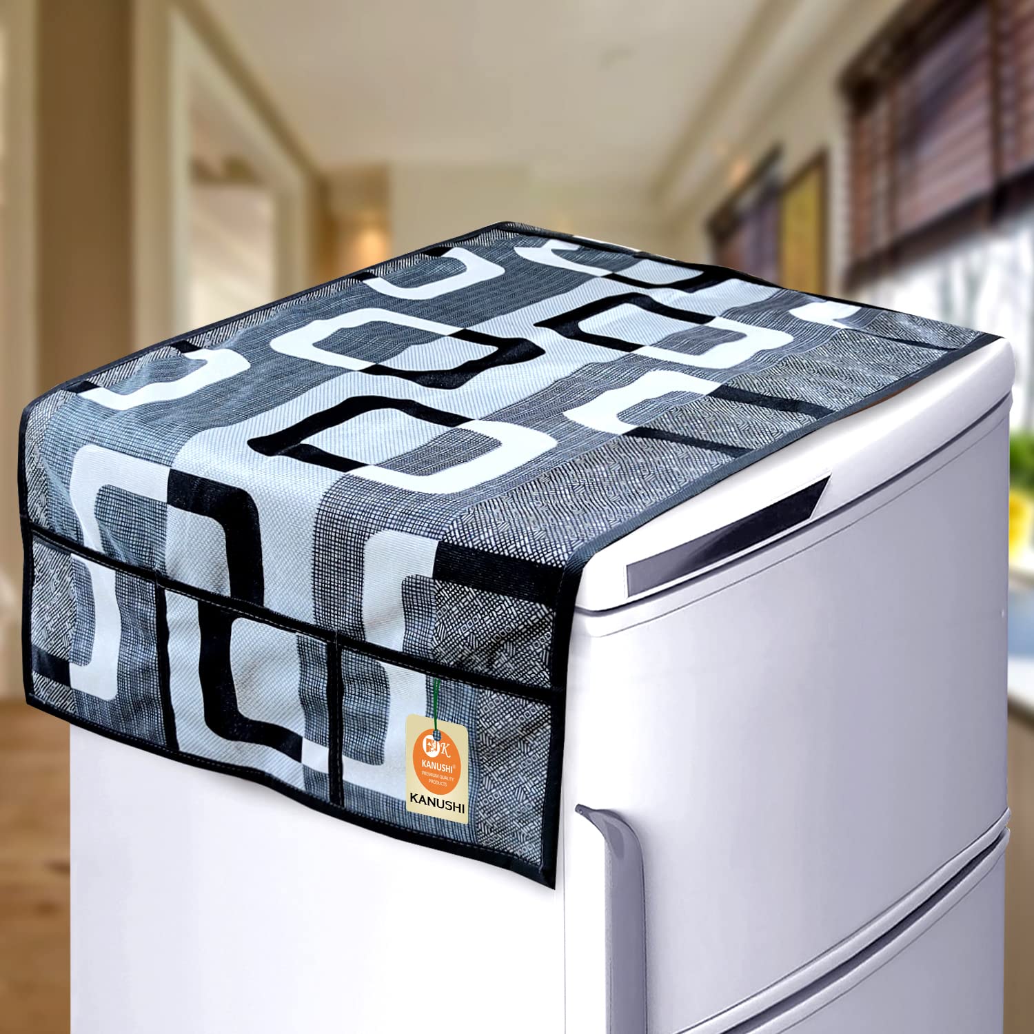 KANUSHI Industries® 1Pc Fridge Cover for Top with 6 Utility Pockets +4 Fridge Mats (FRI-Black-Box+M-2-04)