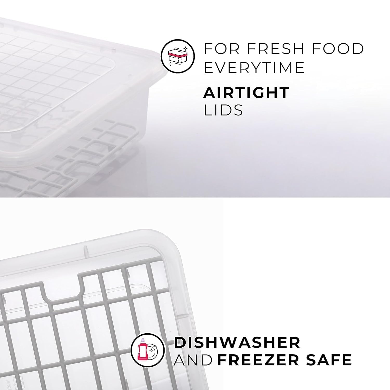 Drain Plate Design :The Fridge containers come with a Removable drain plate which is an added advantage to keep the moisture away from the food which helps in keeping the fruits & vegetables, Fish, Meat, etc fresh all over the long durations. Effective to prevent bacterial growth. Add the lid, prevent odors and keep your food dry and riginal.