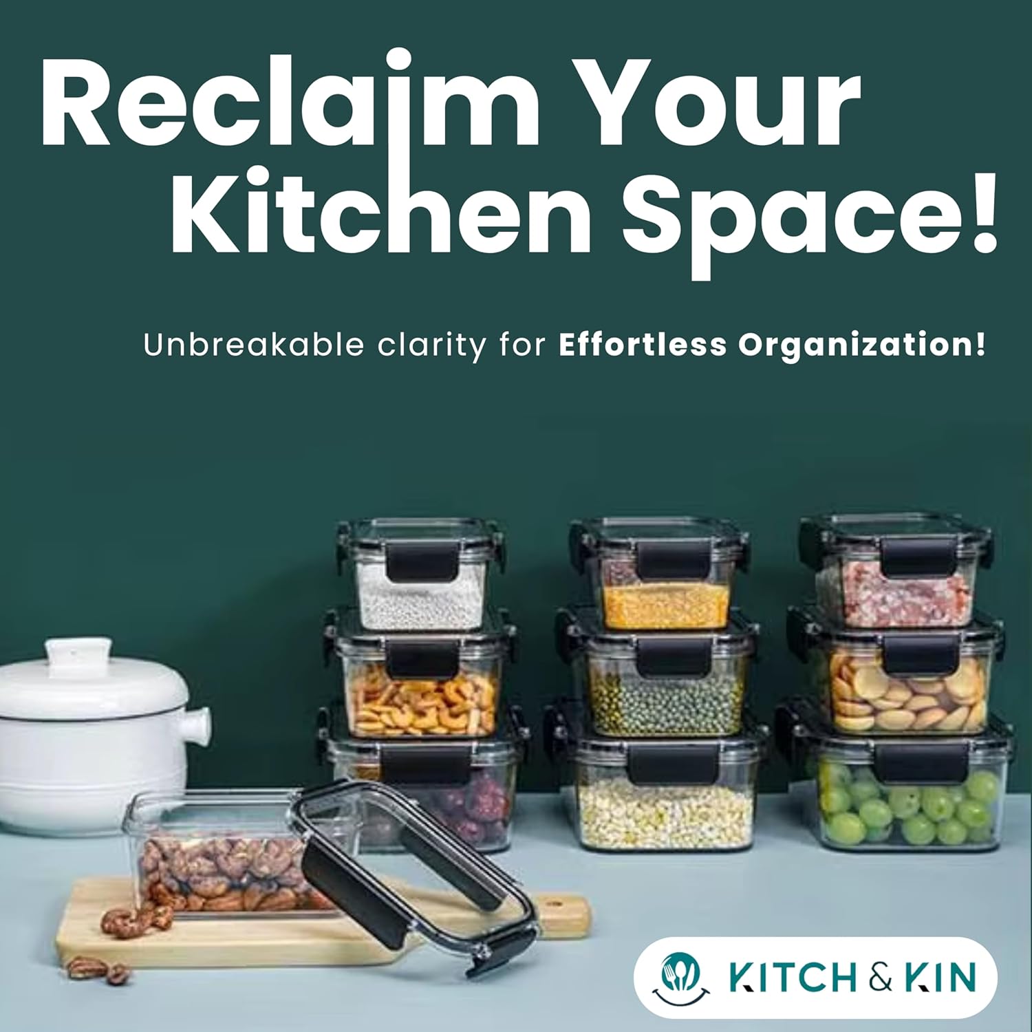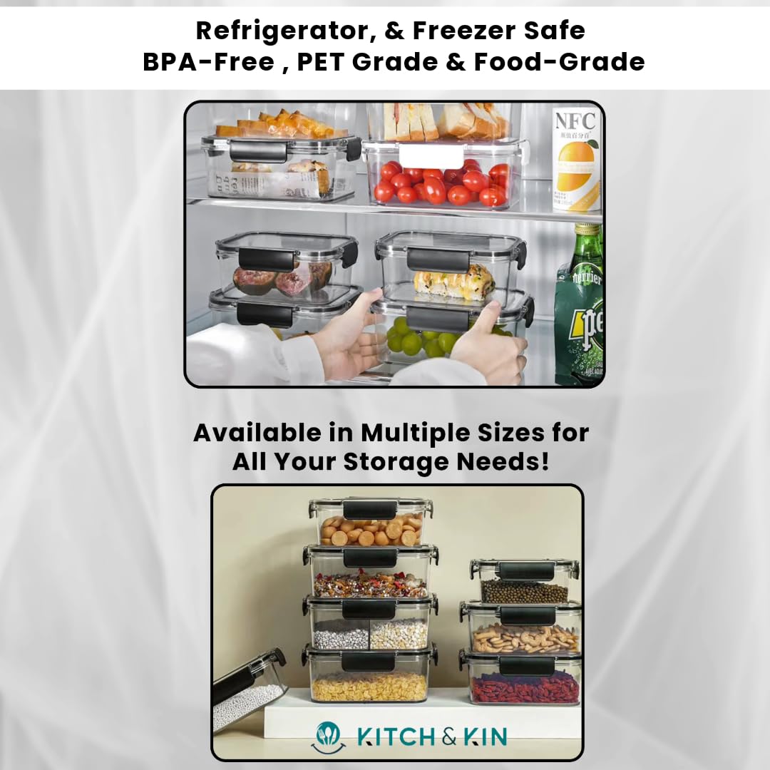 PREMIUM PET-GRADE ACRYLIC PLASTIC CONTAINERS – Transparent, unbreakable food-grade plastic, BPA-free and hygienic. Ideal kitchen storage containers, refrigerator organizer container, and pantry jars.