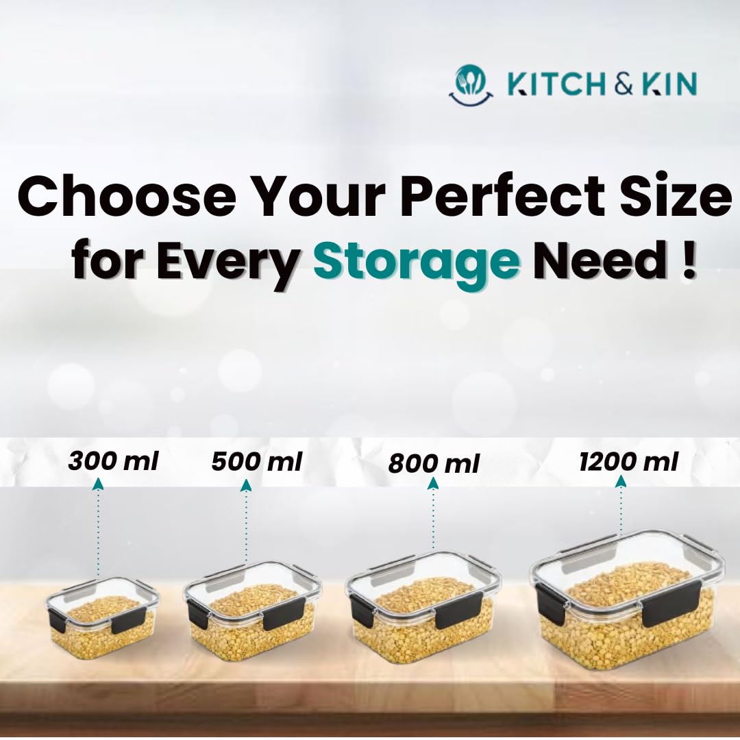 KITCH & KIN 300ml Acrylic Plastic Fridge Storage Containers Pack of 2 – Airtight Kitchen Storage Box & Fridge Organiser for Vegetables, Snacks, Spices & Meal Prep