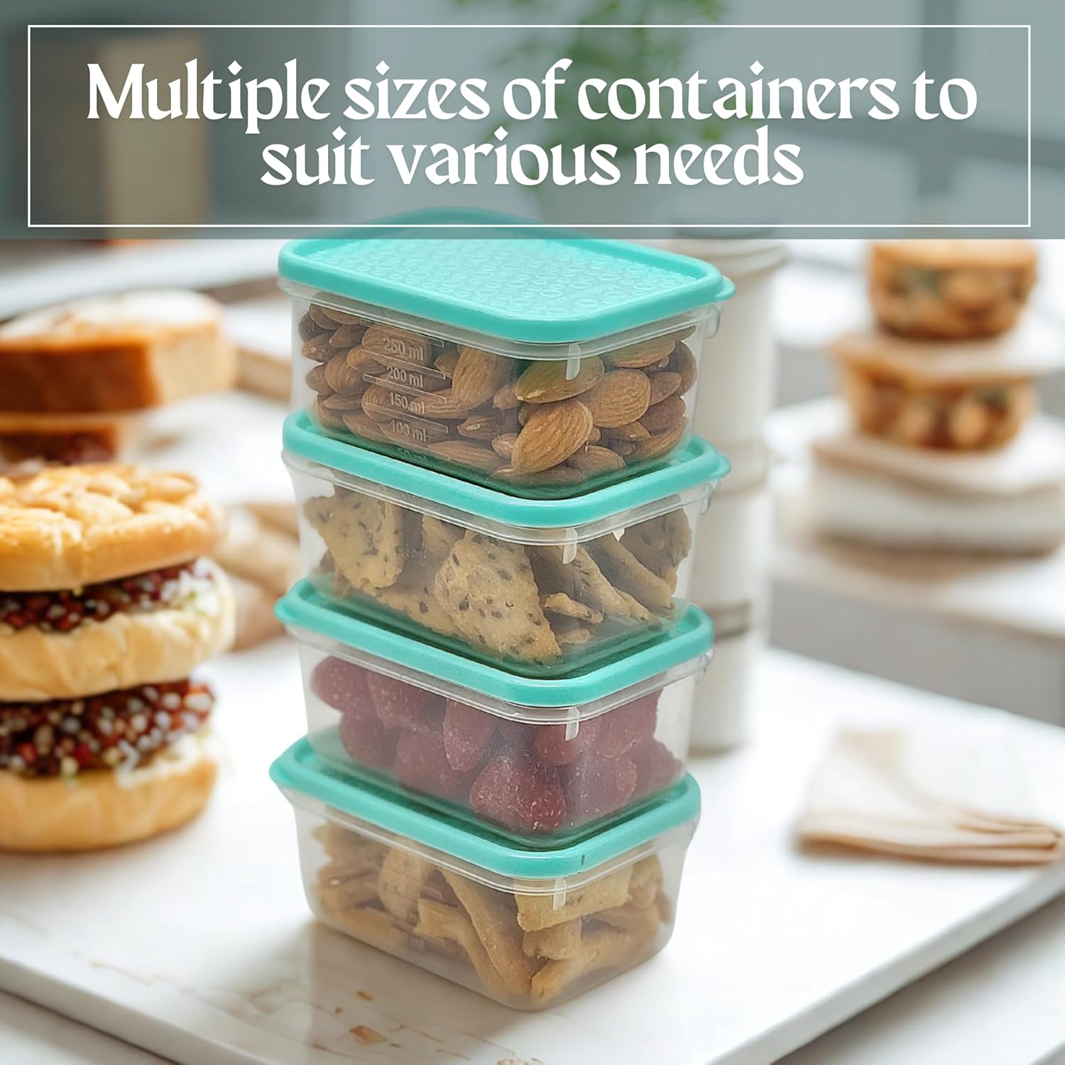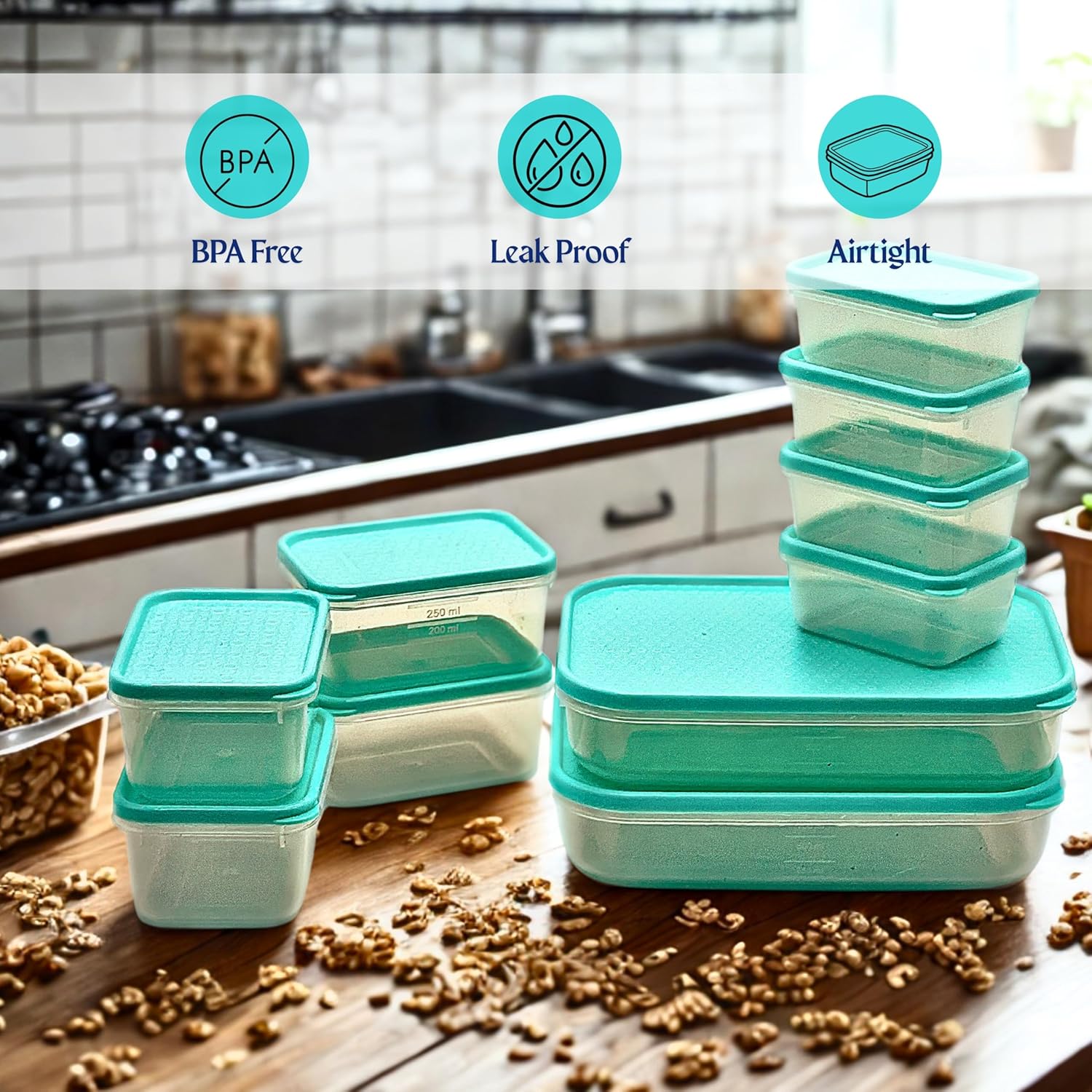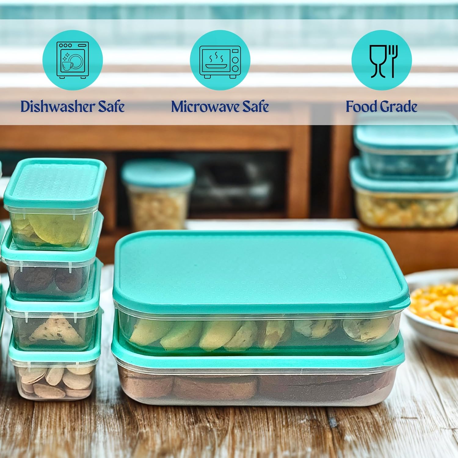 Comprehensive Kitchen Container Set: This kitchen container set includes multiple sizes to cater to all your storage needs. Designed for efficiency, these container boxes for storage helps keep your food fresh and your kitchen well-organized while adding a neat look.