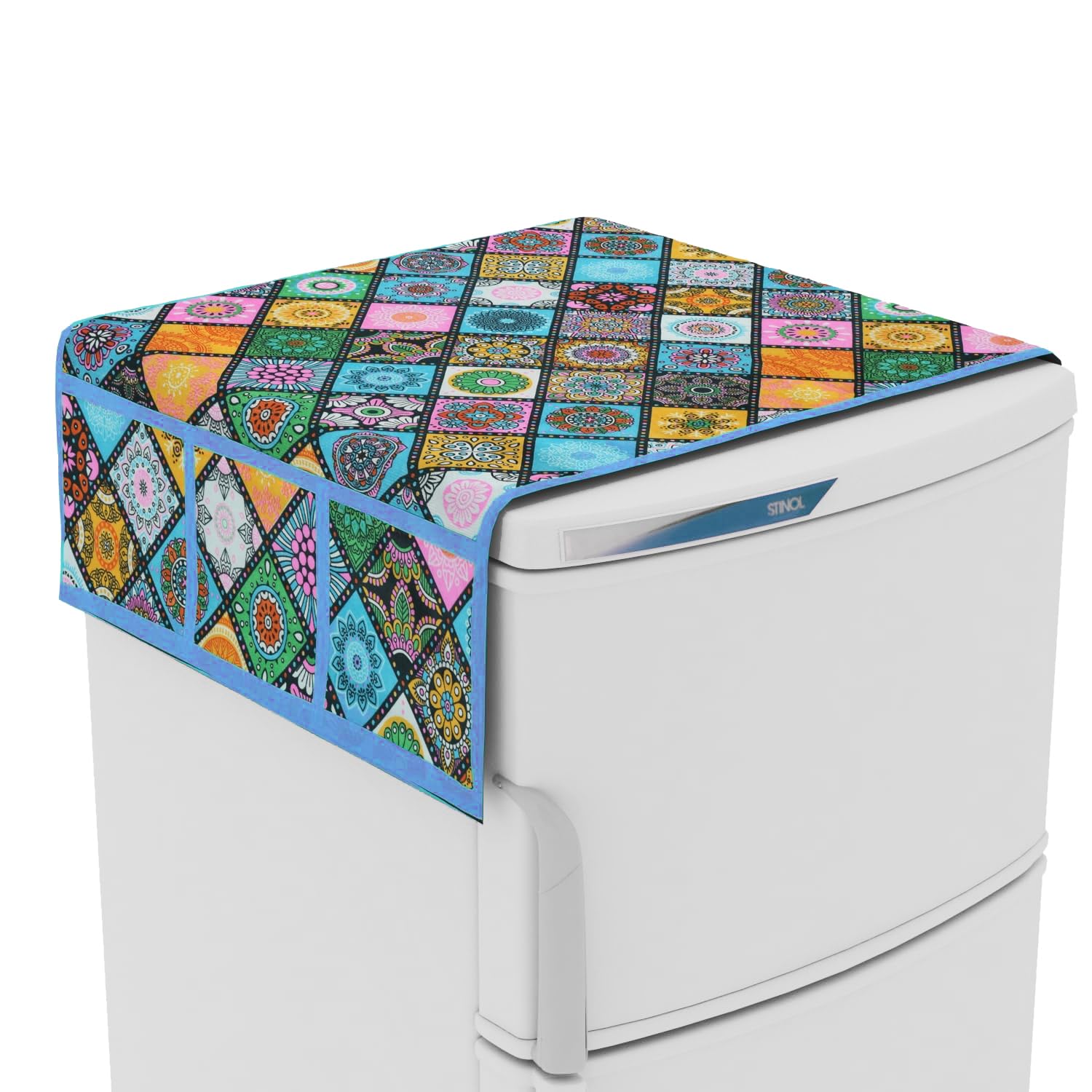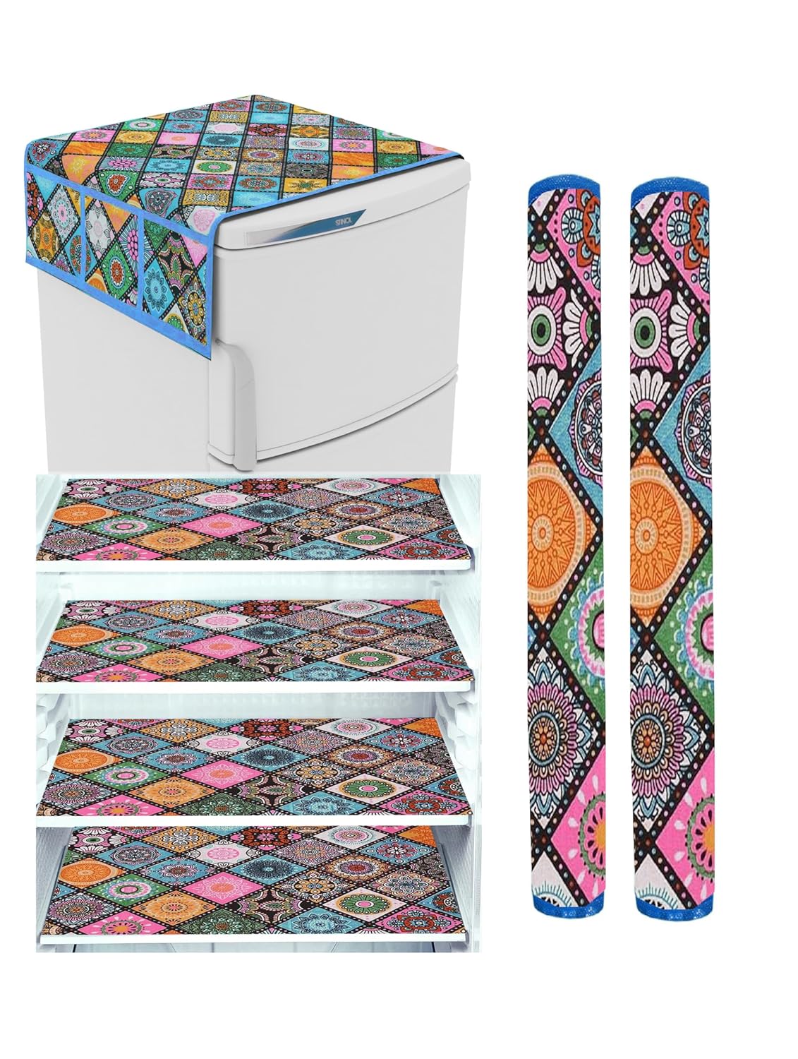 Kitchen Combo Fridge Top Cover, 2 Piece Fridge Handle Cover, 4 Pcs Fridge Mats, (Set of 7 Piece) (RANGOLI 142)