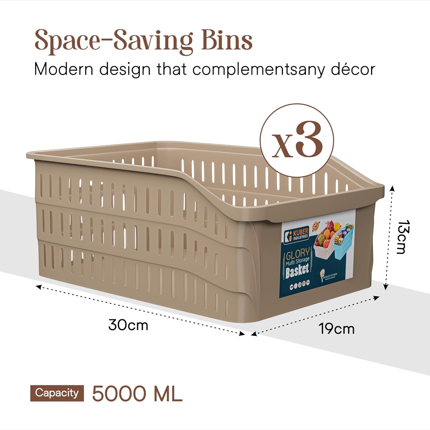 ✅ PACKAGE CONTAINS – (3 Pcs) Kitchen Storage Basket | Color – White, Grey & Beige | Material – Plastic | Product Dimensions – 30 cm x 19 cm x 13 cm