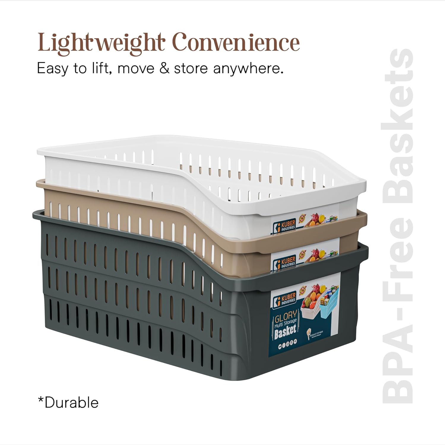 ✅ STRONG AND LIGHT – These plastic baskets from Kuber Industries are made of strong plastic that does not break even with daily use. Cleaning them is also easy- just wash with water