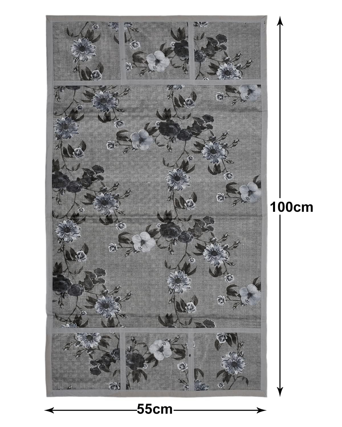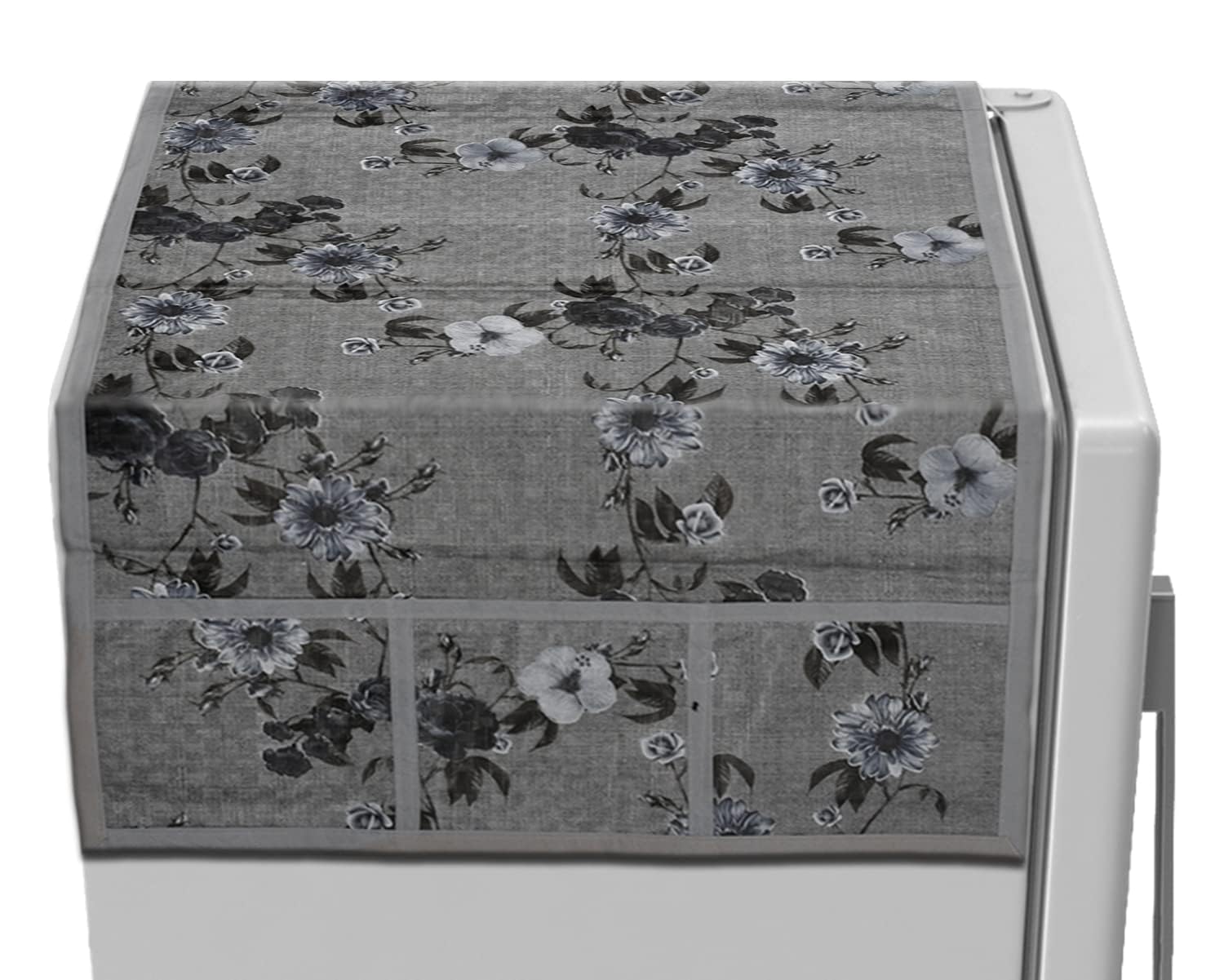 Kuber Industries Floral Print Fridge Cover With Side Pockets|Fridge Top Cover|Refrigerator Cover|Washable Cotton Material|6 Utility Pockets (Grey)