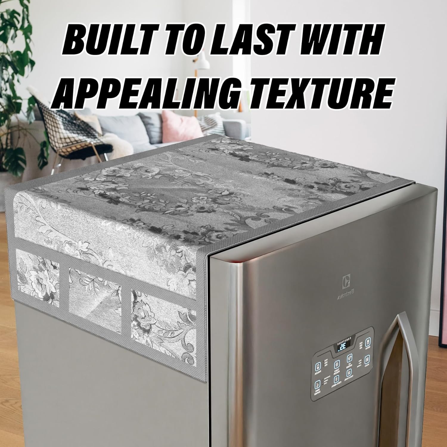 Kuber Industries Fridge Top Cover | PVC Fridge Top Cover | Refrigerator Cover with 6 Side Pockets | Refrigerator Top Protector | Appliance Cover | Fridge Top Cover 101 | Gray