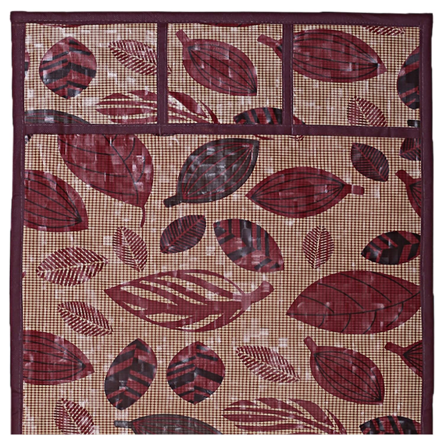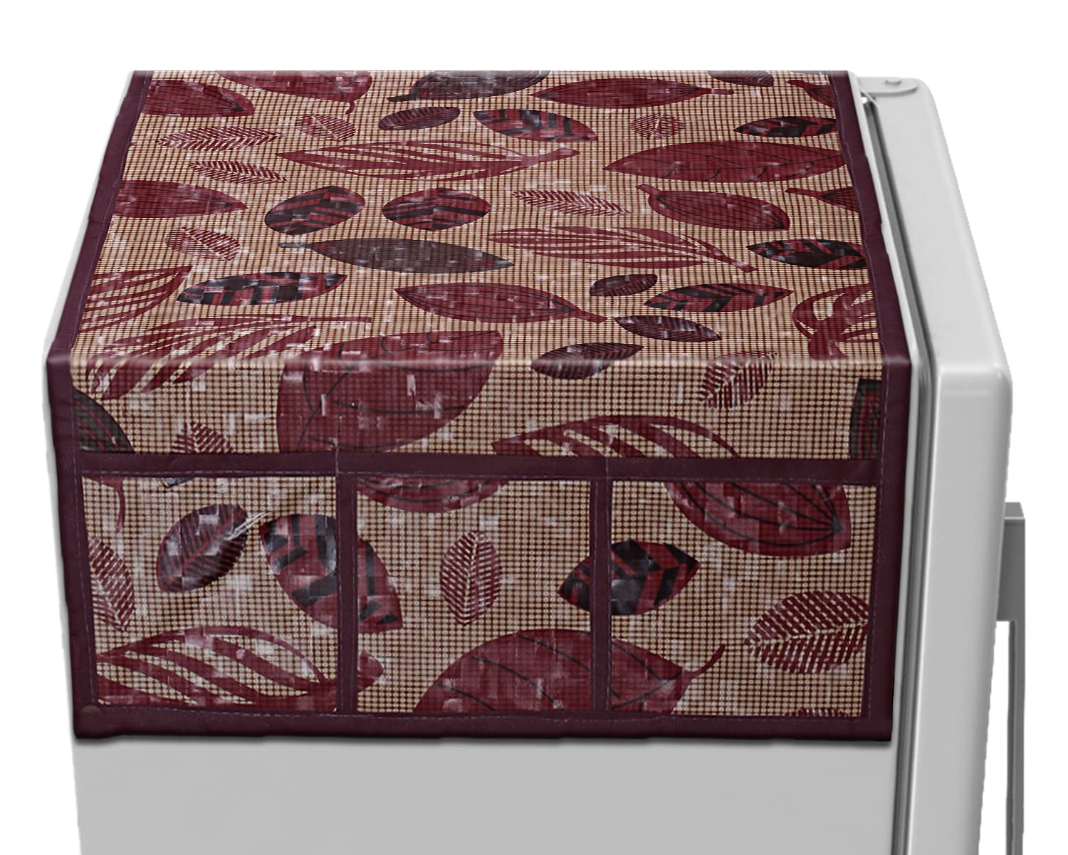 Kuber Industries Leaf Print PVC Fridge Top Cover with 6 Utility Side Pockets (Maroon)