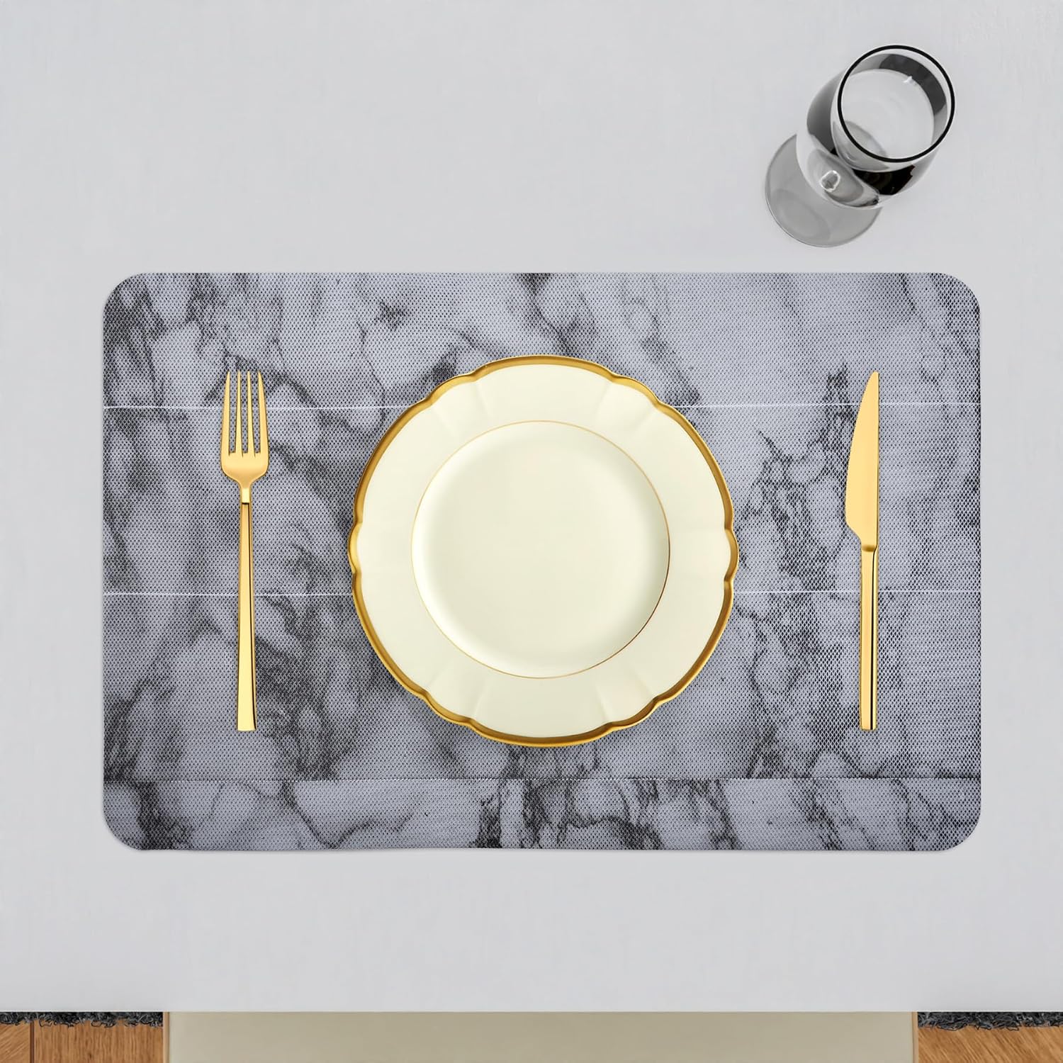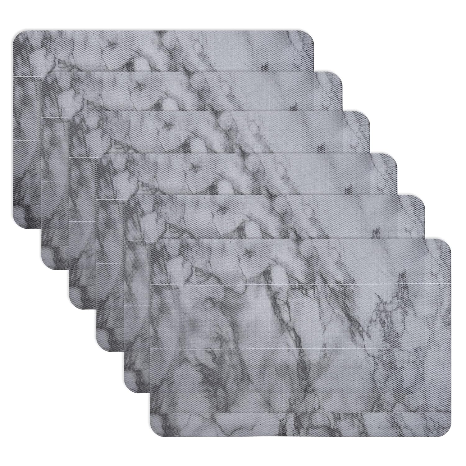Kuber Industries Placemat | PVC Anti-Slip Table Mat Set | Placemats for Kitchen Table | Dining Table Placemats | Marble Placemat | 6 Piece Set | Gray