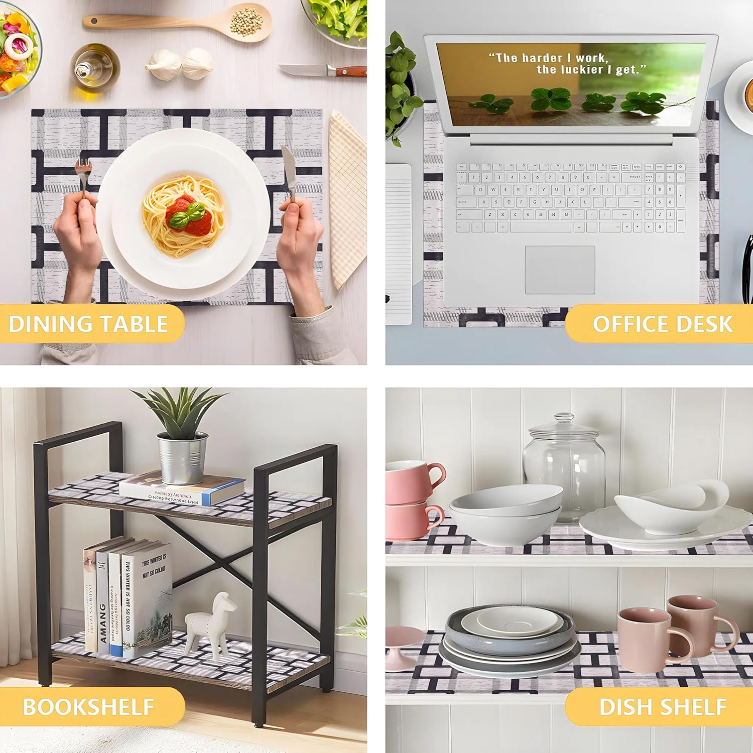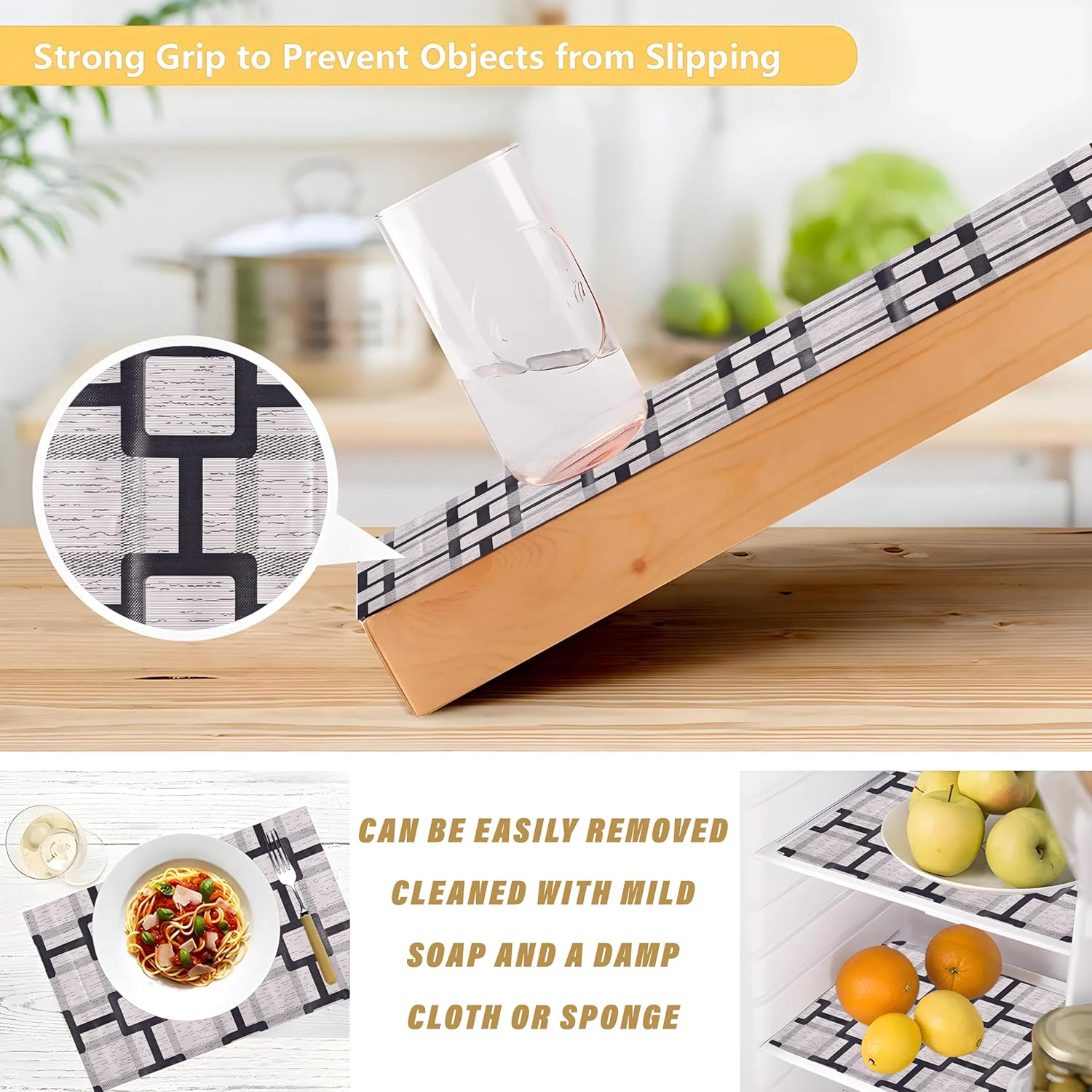 MULTIFUNCTIONAL LINERS: Suitable for home and kitchen. It not only can be used as a kitchen liner to ensure the cleanliness of home and kitchen, but also can as a refrigerator mat to keep the freshness of food and fruits. More can be used as cabinet mats, drawer liner, cupboard pad, desk liners, table pads, shelve, counter top etc. Multipurpose Anti-Slip Mat can solve your problem and save your precious time; keep your stored items & shelves clean and protected.