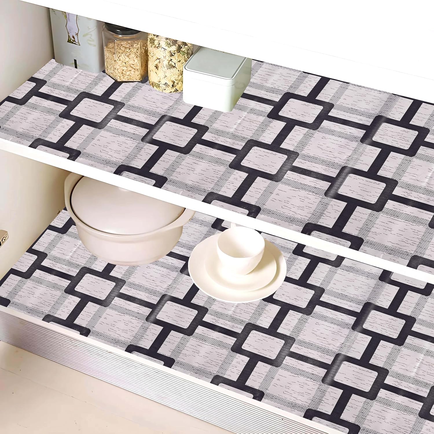 Kuber Industries Polyvinyl Chloride Check Pattern (10 Mtr Roll) Anti Slip Kitchen Mats for Shelf – Waterproof Trolley Mats for Fridge|Cabinet|Drawer|Bathroom – Multipurpose Liner (Easy to Cut) (Grey)