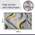 Kuber Industries Polyvinyl Chloride (PVC) Fridge Top Cover | Grey Dust-Proof & Waterproof Refrigerator Cover with 6 Utility Pockets | Golden Marvel Design 100x57x1 cm