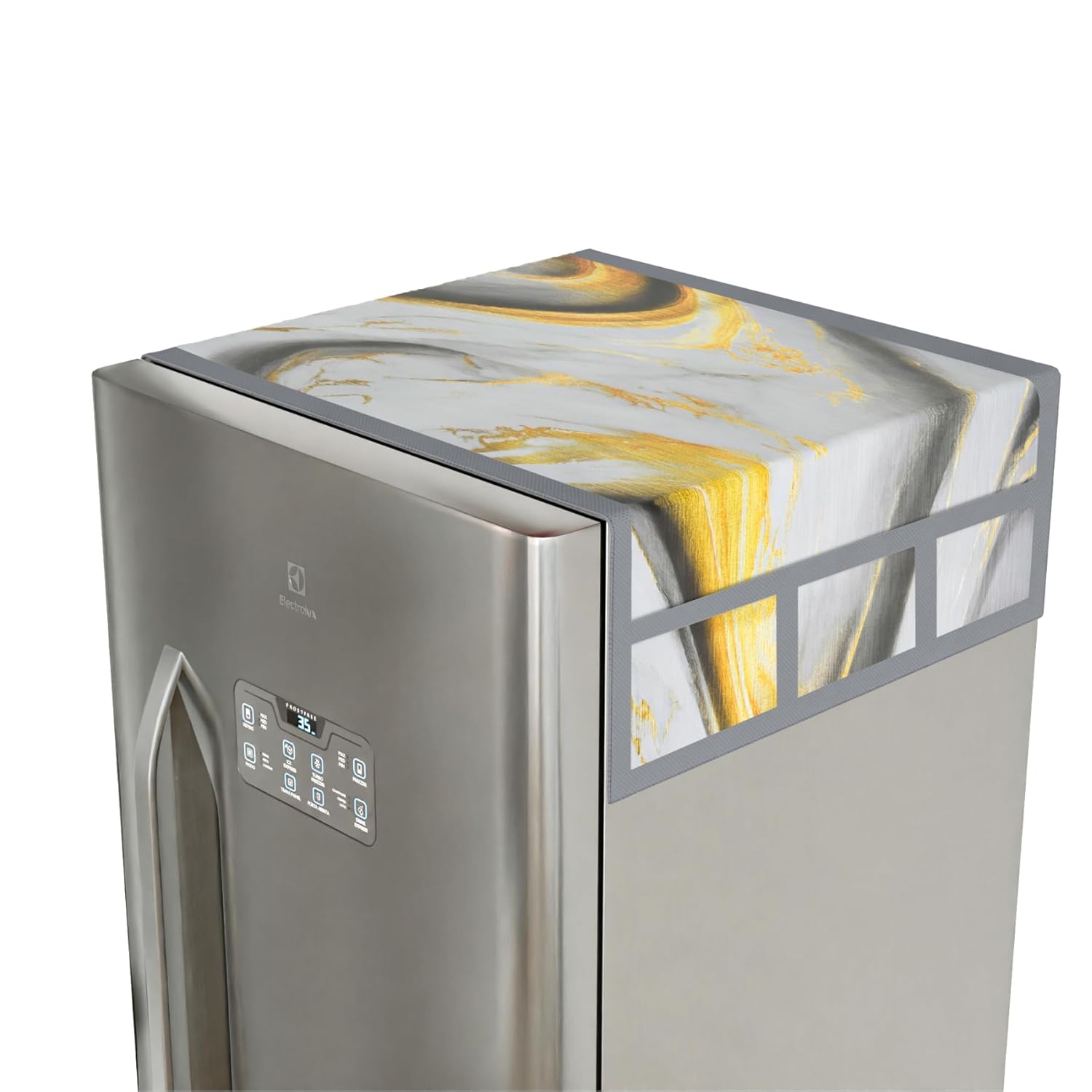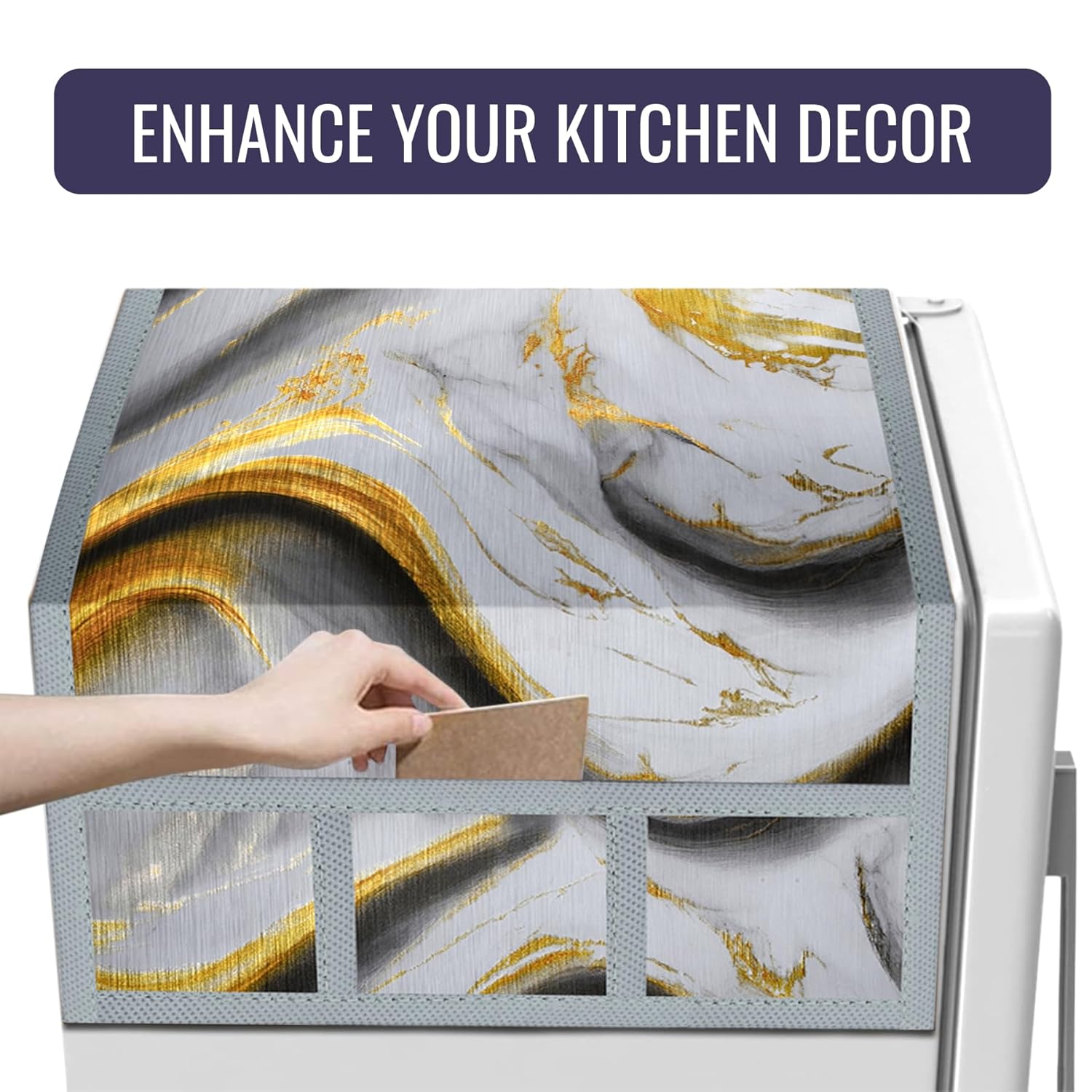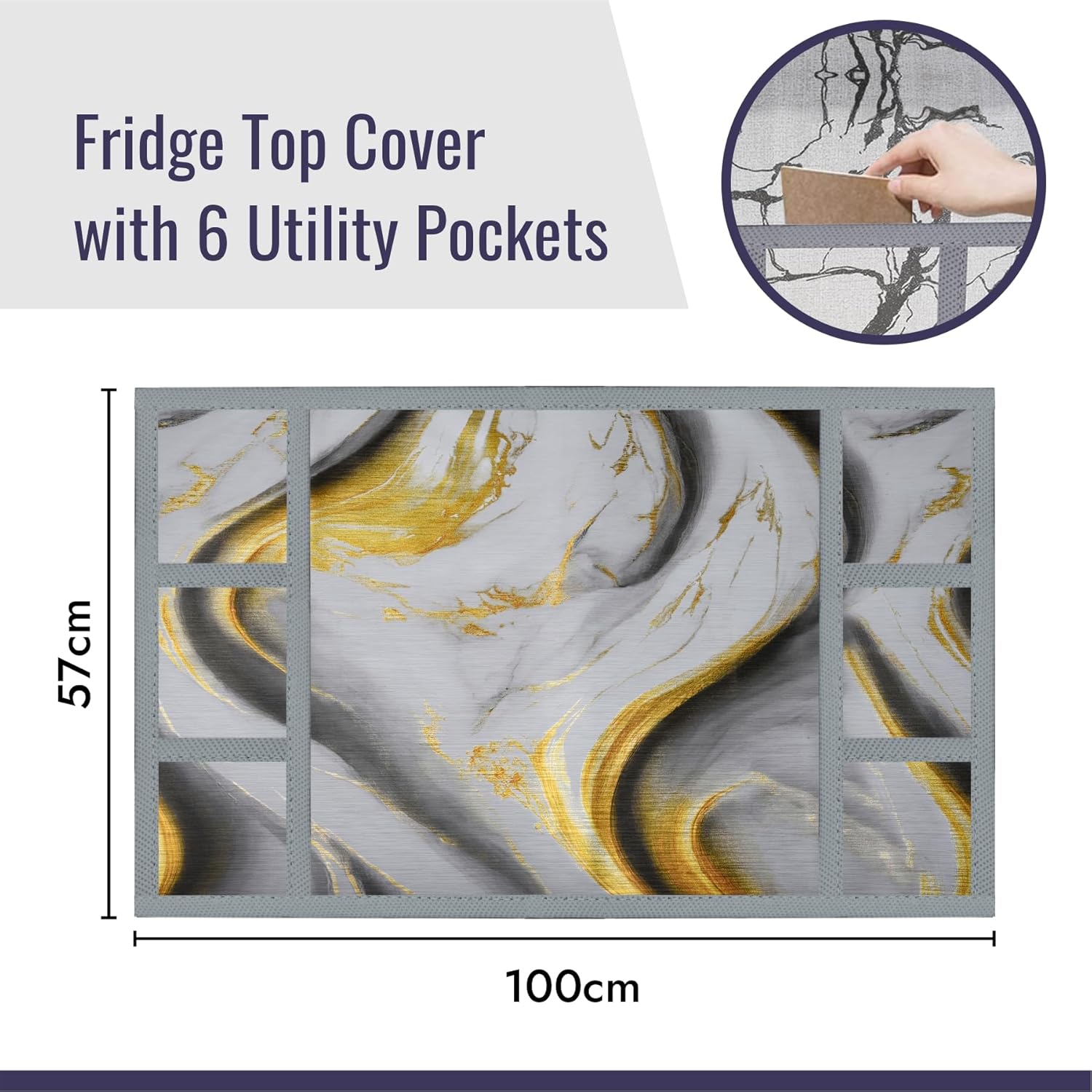 🌺 PACKAGE CONTAINS : 1 Piece Fridge Top Cover | Golden Marble Design | MATERIAL : PVC | PRODUCT DIMENSION : 100 cm x 57 cm x 1 cm