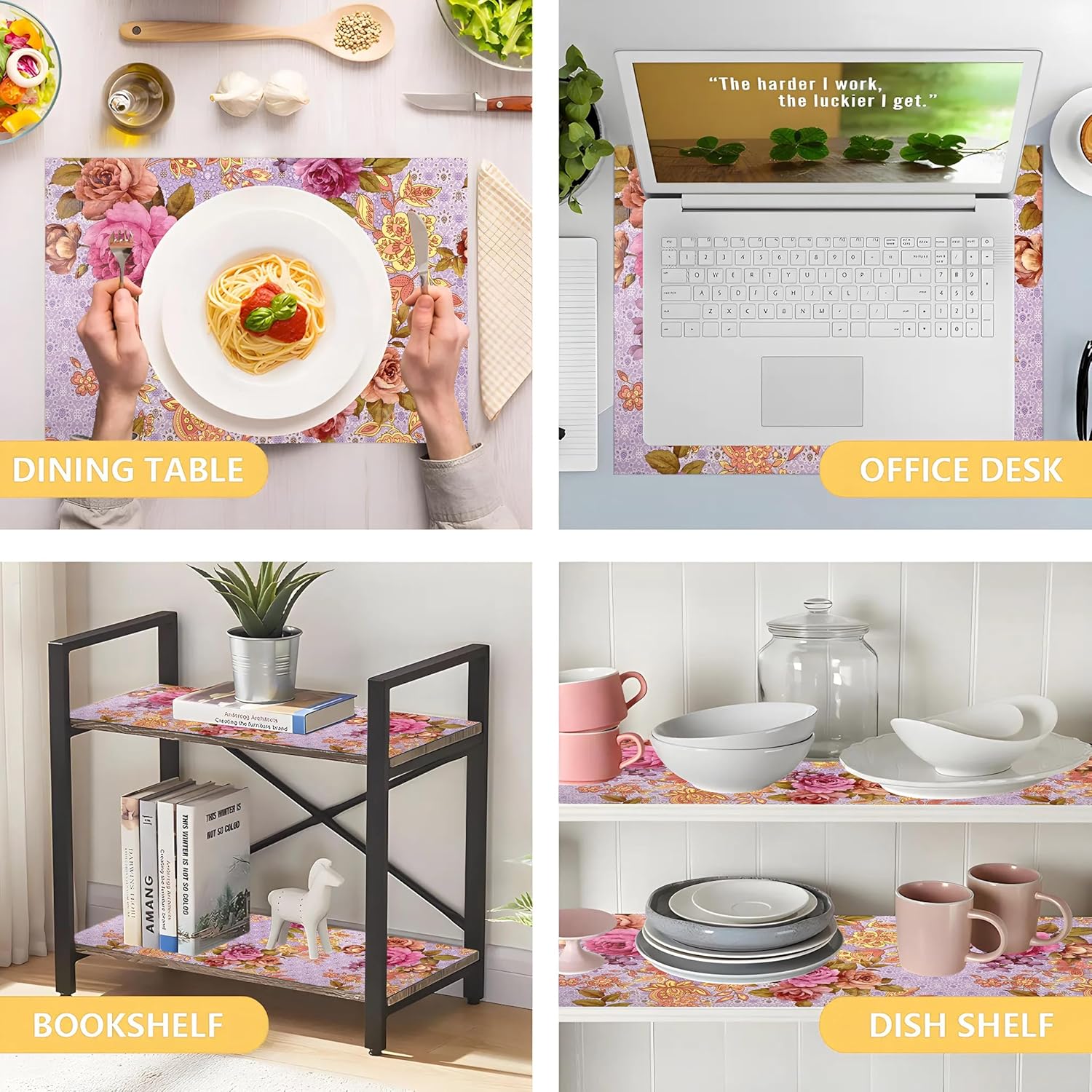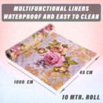 ✅ Package Contains – (1 Pcs) Shelf Liner/Slap Roll | Color – Flower Print – Lavender | Material – PVC | Product Dimensions -1000 cm x 45 cm x 1 cm