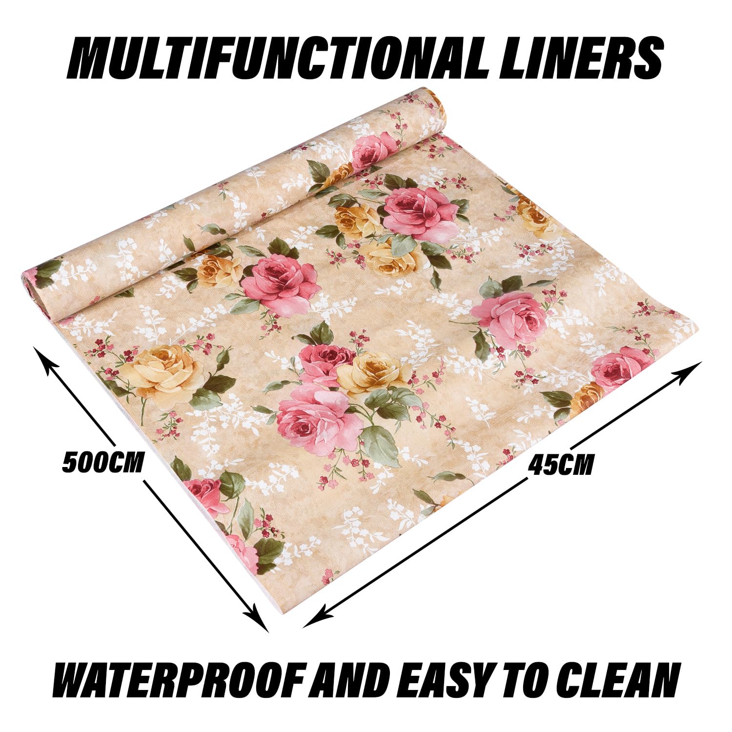 🌿 PACKAGE CONTAIN : 1 Piece Shelf Liner | 5 MTR | MATERIAL : PVC | PACKAGE DIMENSION : 500 cm x 45 cm x 1 cm