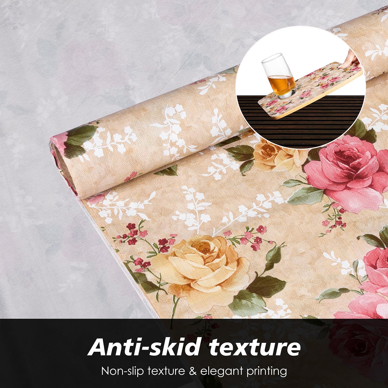 Kuber Industries Shelf Liner | Shelf Mat for Drawer Organizer | Flower Design Wardrobe Mat | 5 Meter | Beige