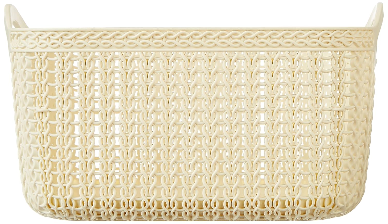 Kuber Industries Unbreakable Multipurpose Storage Basket With Handles|Medium Size & Flexible Plastic |Fruit/Vegetable/Bathroom/Home Basket, Pack of 2(Brown & Cream) -CTKTC39079,Rectangular
