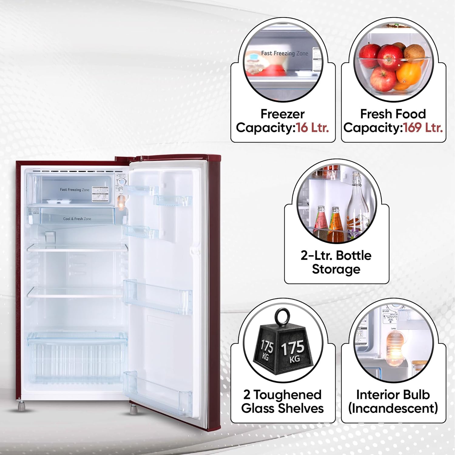 Capacity 185 liters: Suitable for families with 2 to 3 members and bachelors / couples| Freezer capacity: 16 L, Fresh food capacity: 169 L