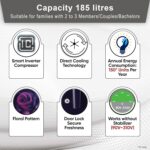 Capacity 185 litres: Suitable for families with 2 to 3 members/ Couples / Bachelors | Freezer capacity: 16 L, Fresh food capacity: 169 L