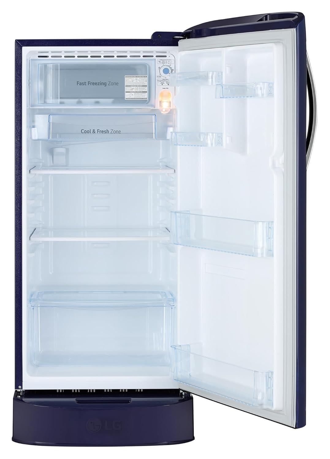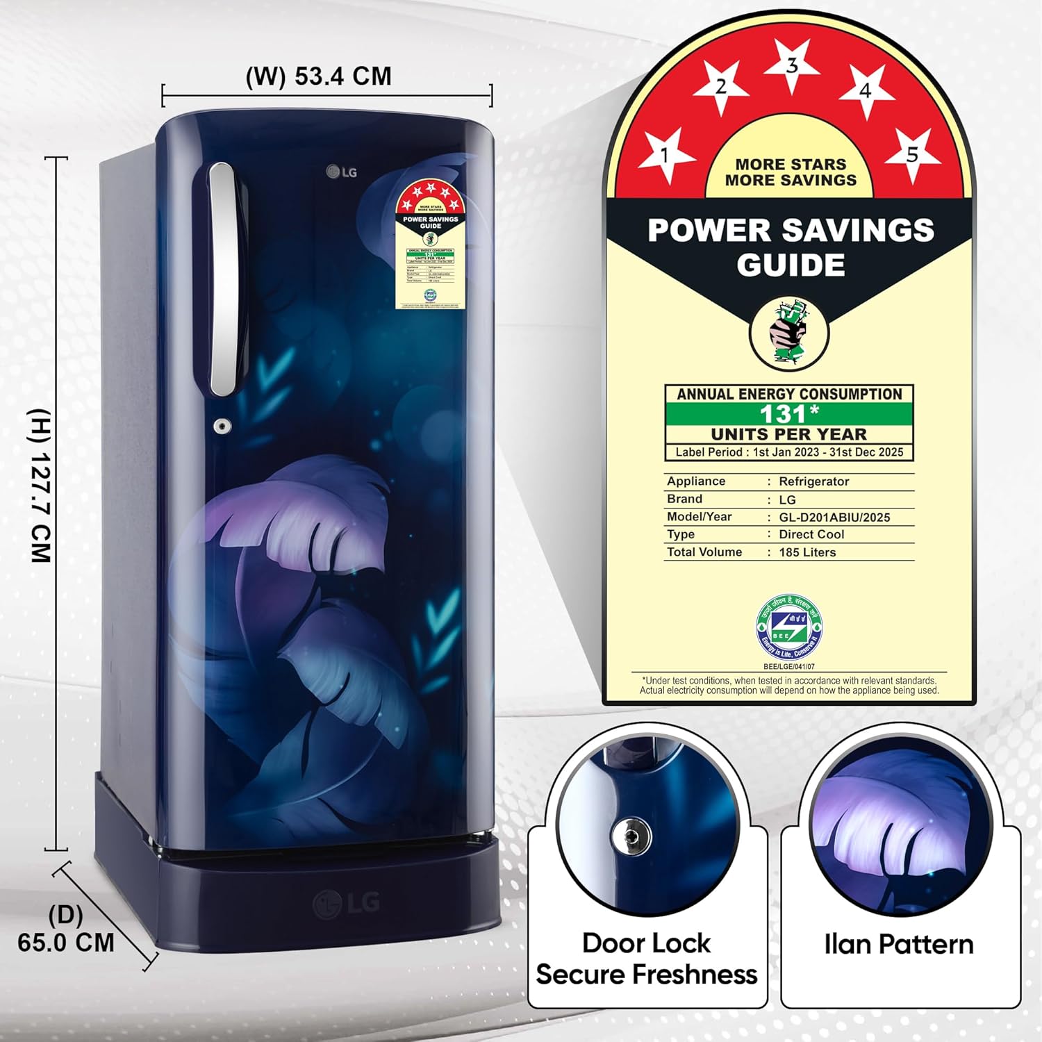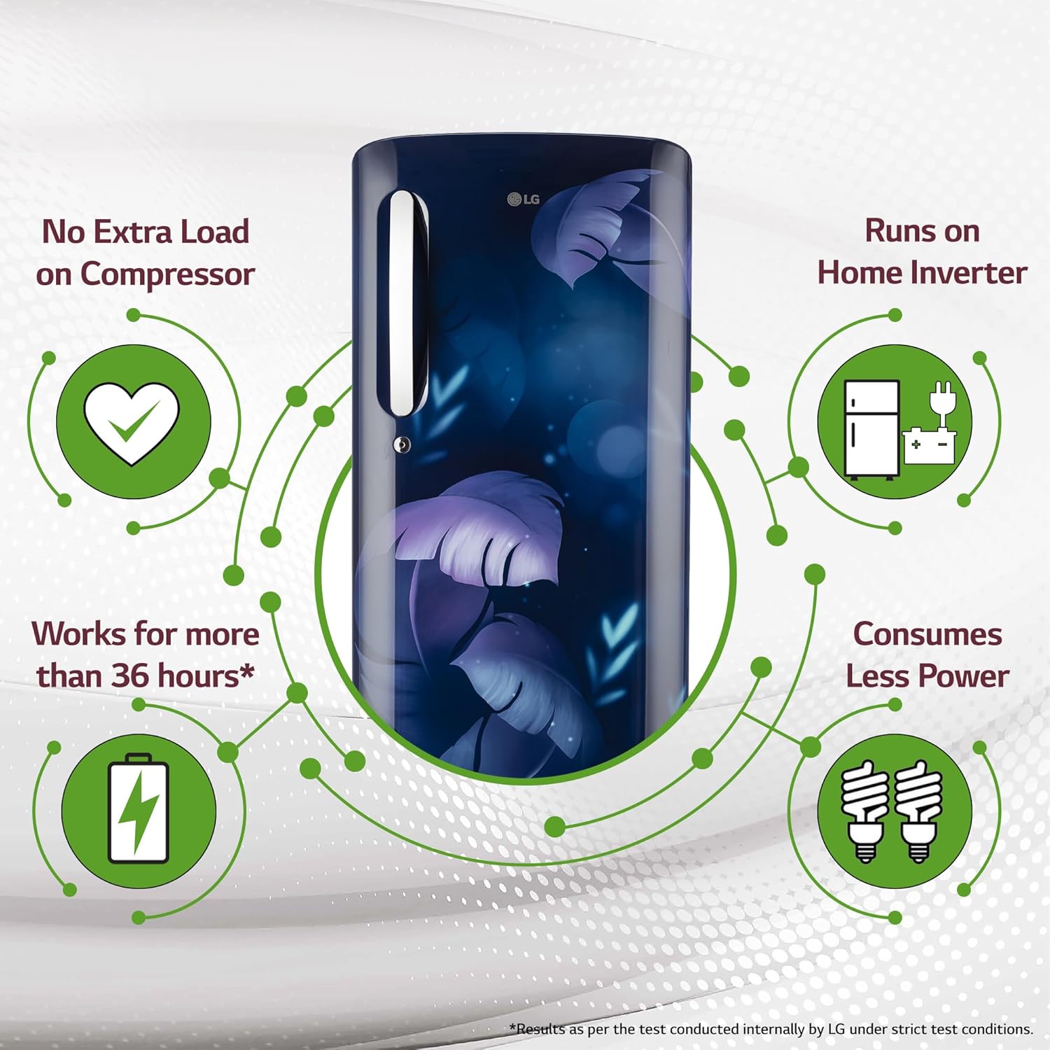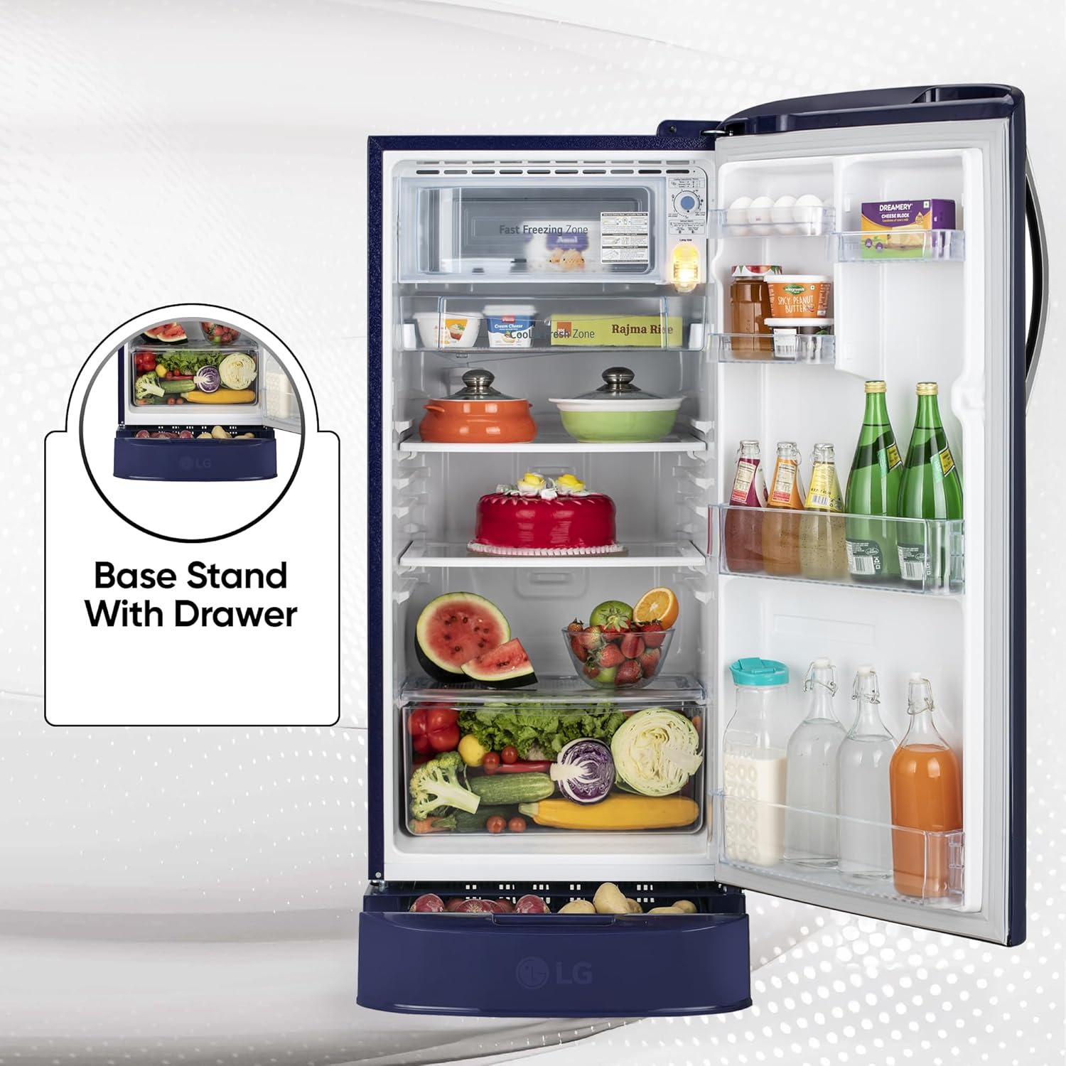 LG 185 L, 5 Star, Smart Inverter Compressor, Direct Cool Single Door Refrigerator (GL-D201ABIU.BBIZEBN, Blue ILAN, Moist N Fresh, Auto Smart Connect & Base Stand Drawer)