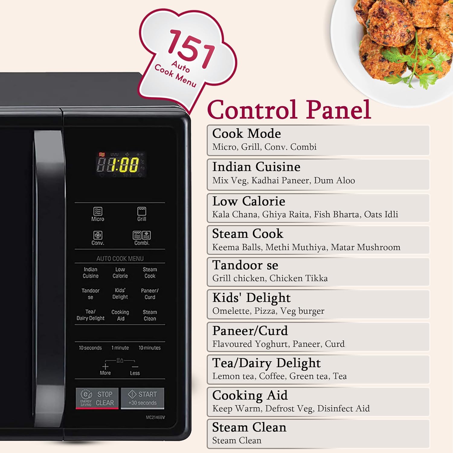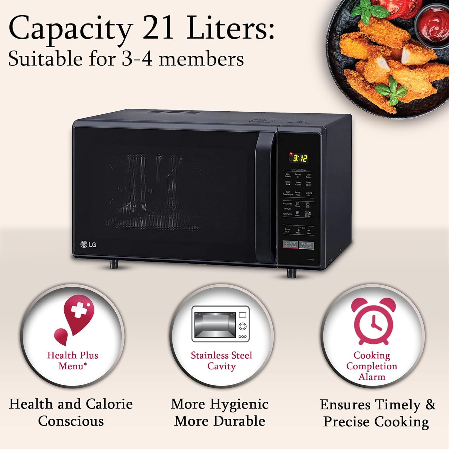 LG 21 L Convection Microwave Oven (MC2146BV, Black, Auto Cook Menu, Defrost, Stainless Steel Cavity, Heathplus menu, Indian Cuisine, Tandoor Se, Paneer/Curd, Steam Clean & Quartz Heater)