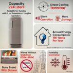 Net capacity: 224 litres: Suitable for families with 2 to 3 members/ Couples / Bachelors | Freezer capacity: 27 L; Fridge capacity (fresh food): 197 L