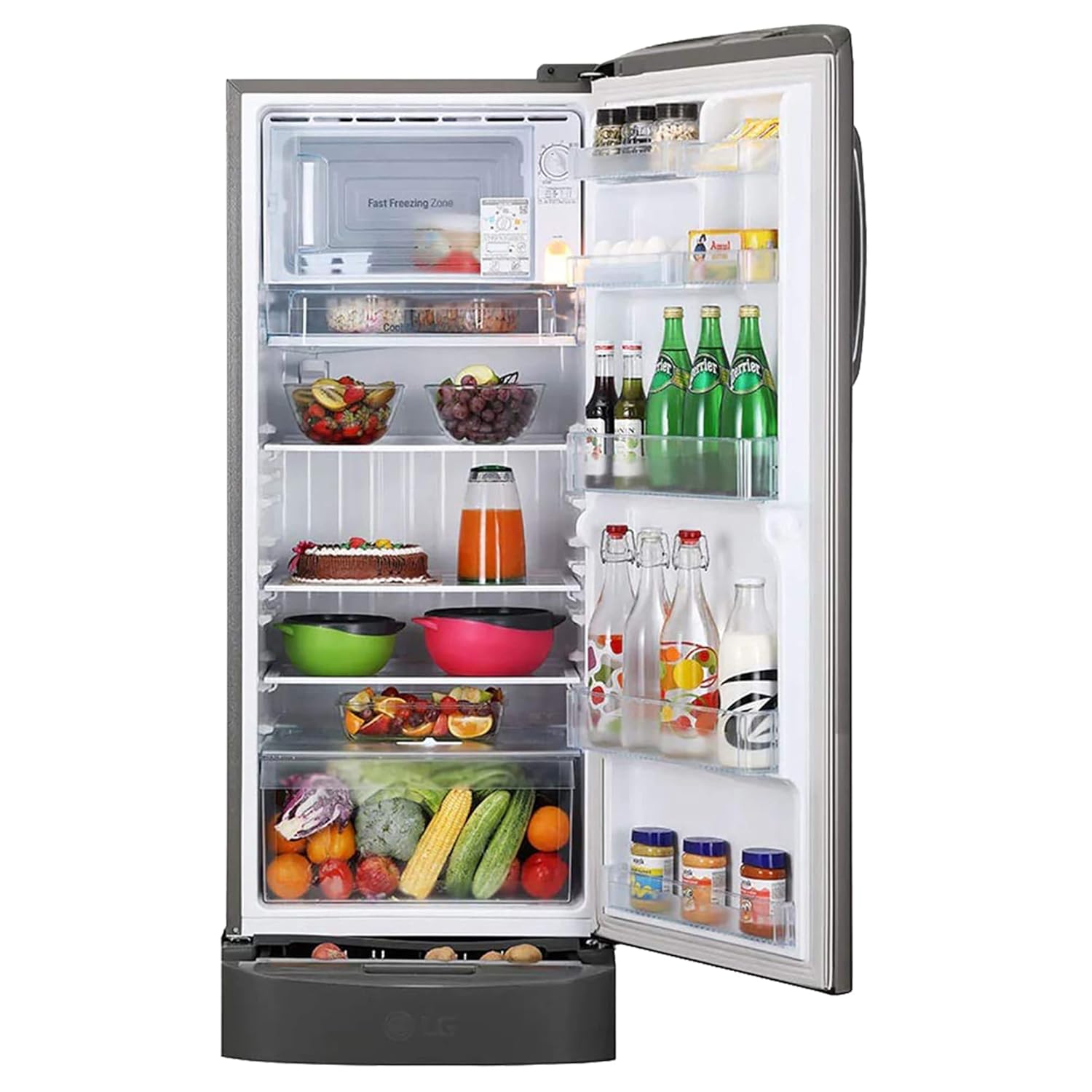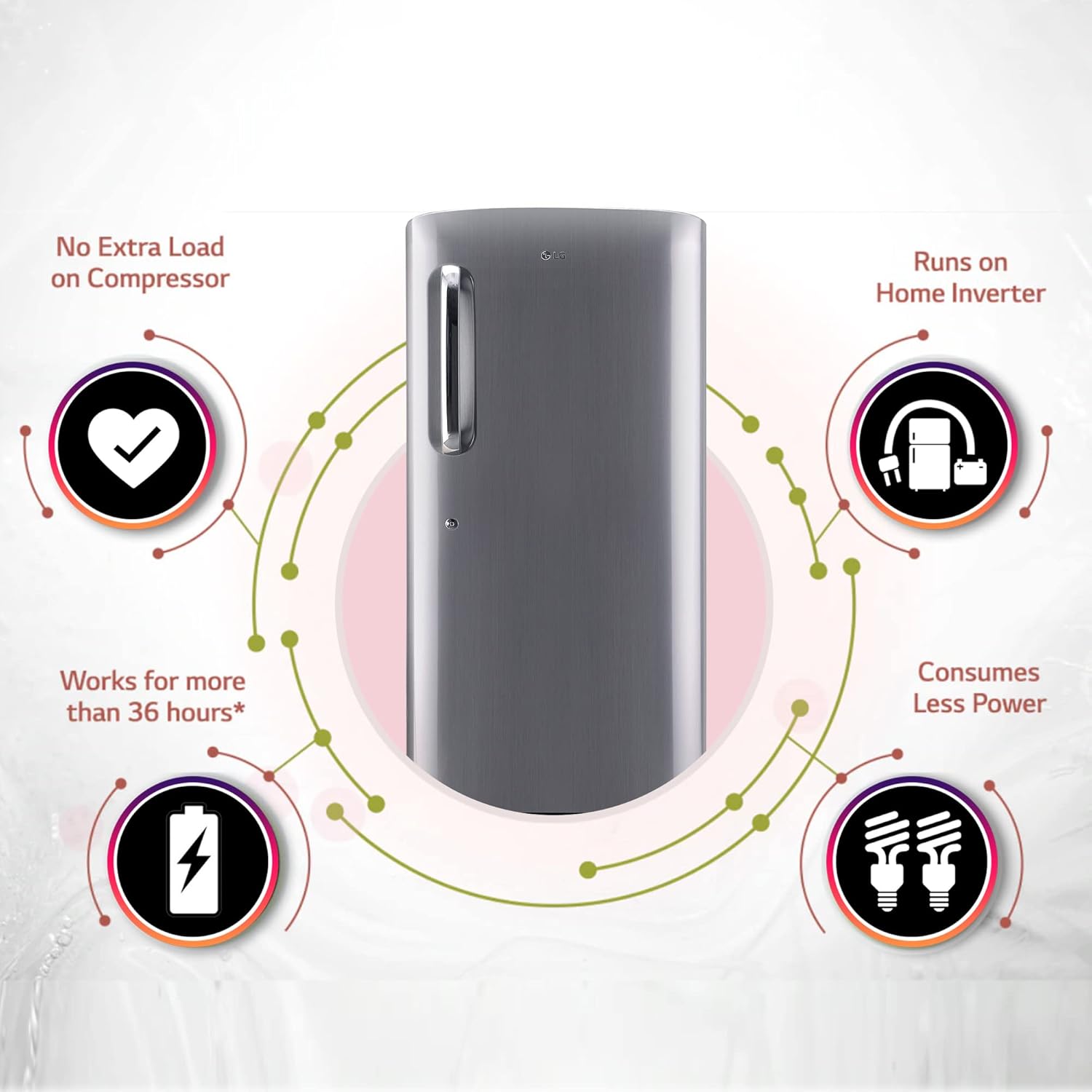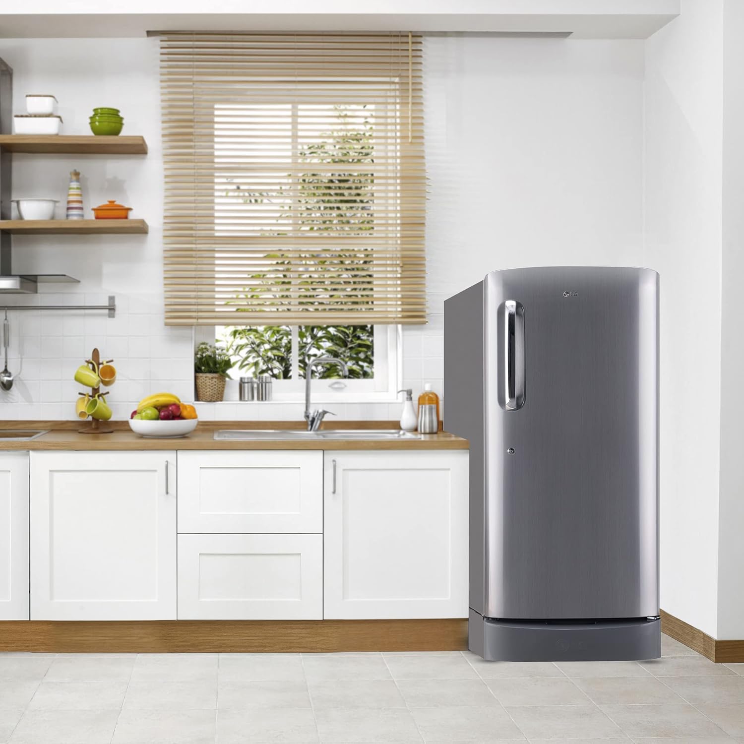LG 235L 5 Star Inverter Direct-Cool Single Door Refrigerator (GL-D241APZZ, Shiny Steel, Base Stand with Drawer)