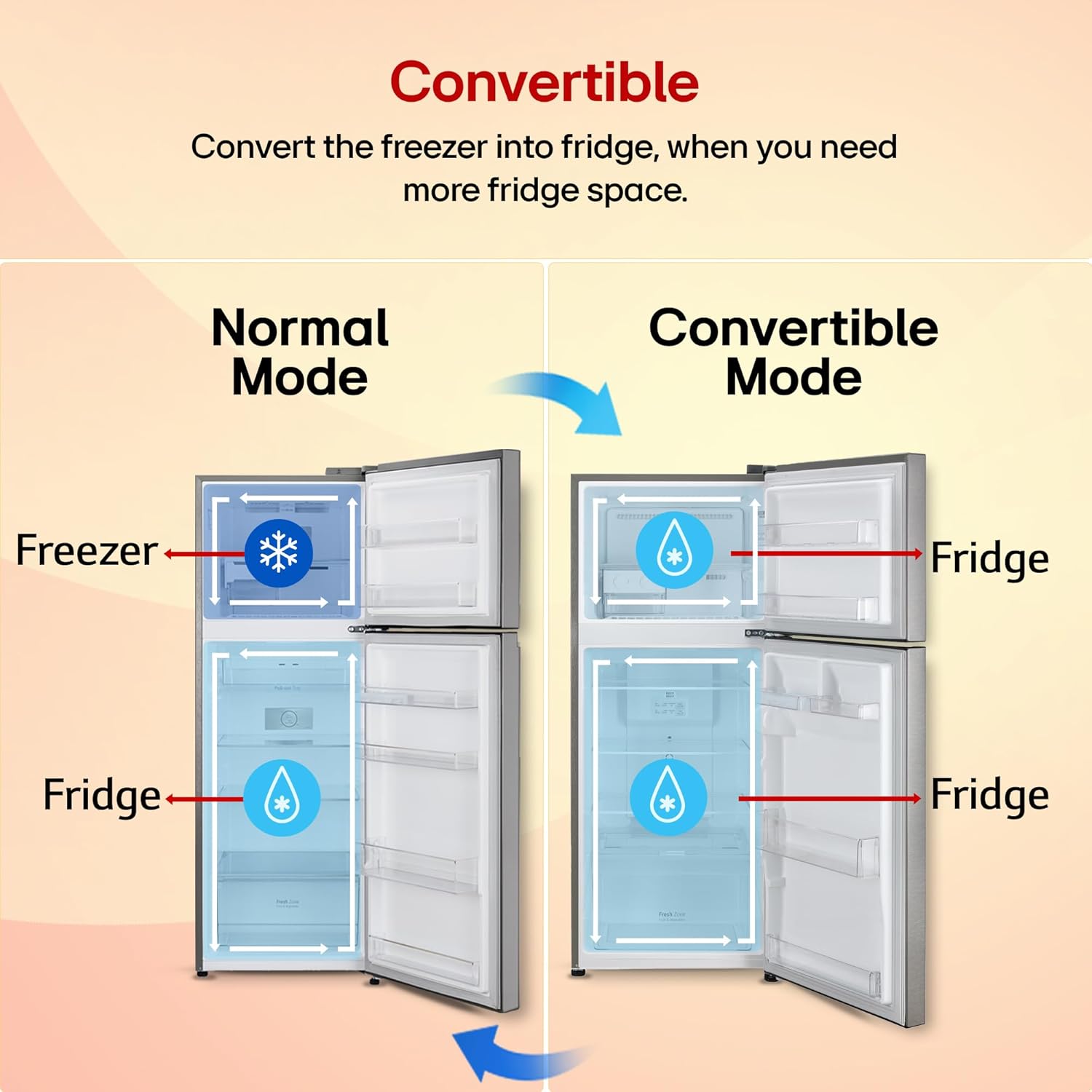 With LG’s Convertible feature, easily switch between fridge and freezer modes to suit your storage needs. Enjoy flexible space, better freshness and convenience for every occasion.
