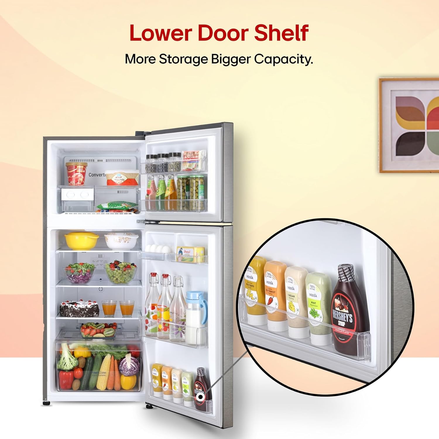 Lower door shelf Space for every bottle