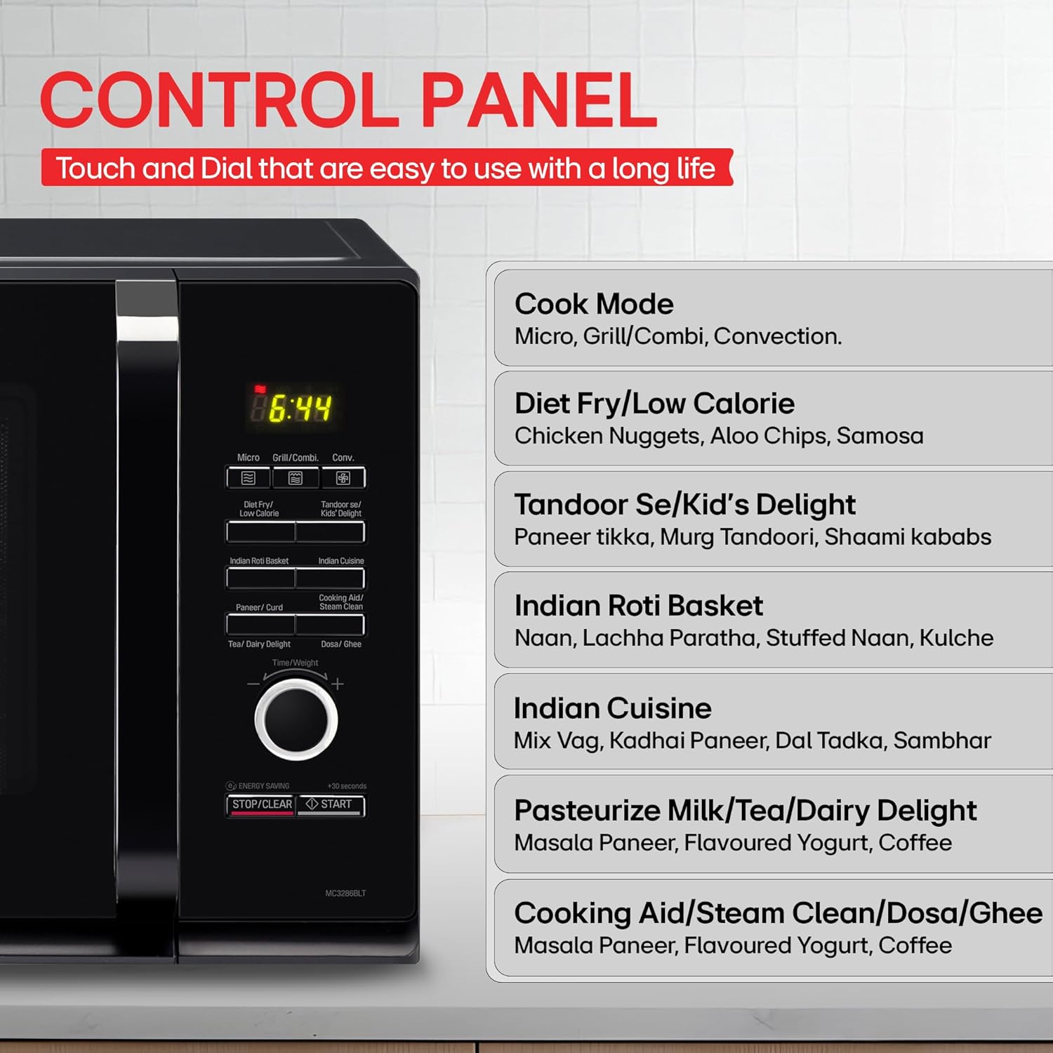 LG 32 L Convection Microwave Oven (MC3286BLT, Black, Auto Cook Menu, Diet Fry and with Stainless Steel Cavity)