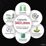 Capacity 343 L: Suitable for families with 5 or more members I freezer capacity: 81 L, fresh food capacity: 262 L
