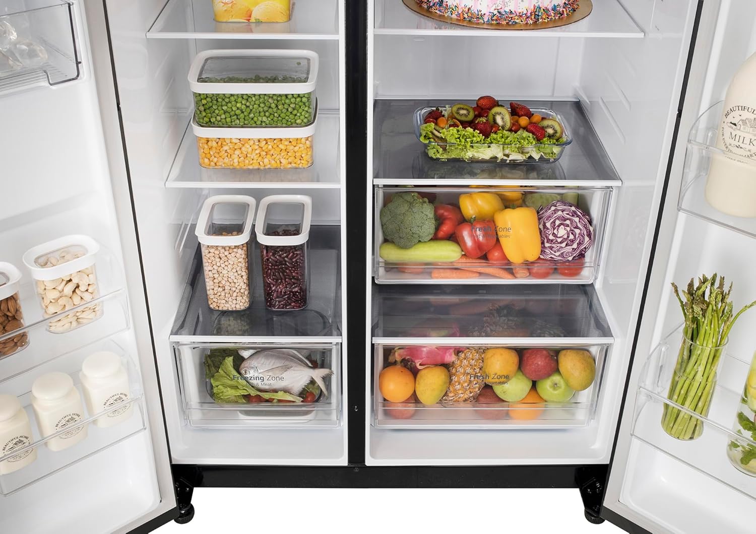 Efficient organize and cool your groceries with spacious Side by Side refrigerator featuring dual compartments for convenient access