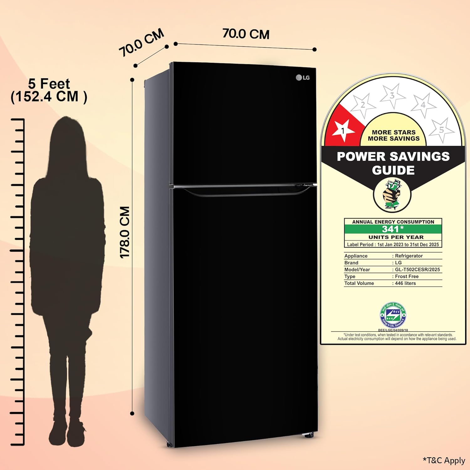 Energy rating: 1 star – Low Energy Efficiency (higher star ratings lead to lesser electricity consumption lowering bills or potential savings). Annual energy consumption: 341 units per year | BEE label period: 1st Jan 2023 to 31st Dec 2025 [For more details please refer BEE label]. | Auto Smart Connect Technology that helps connect your refrigerator to home inverter