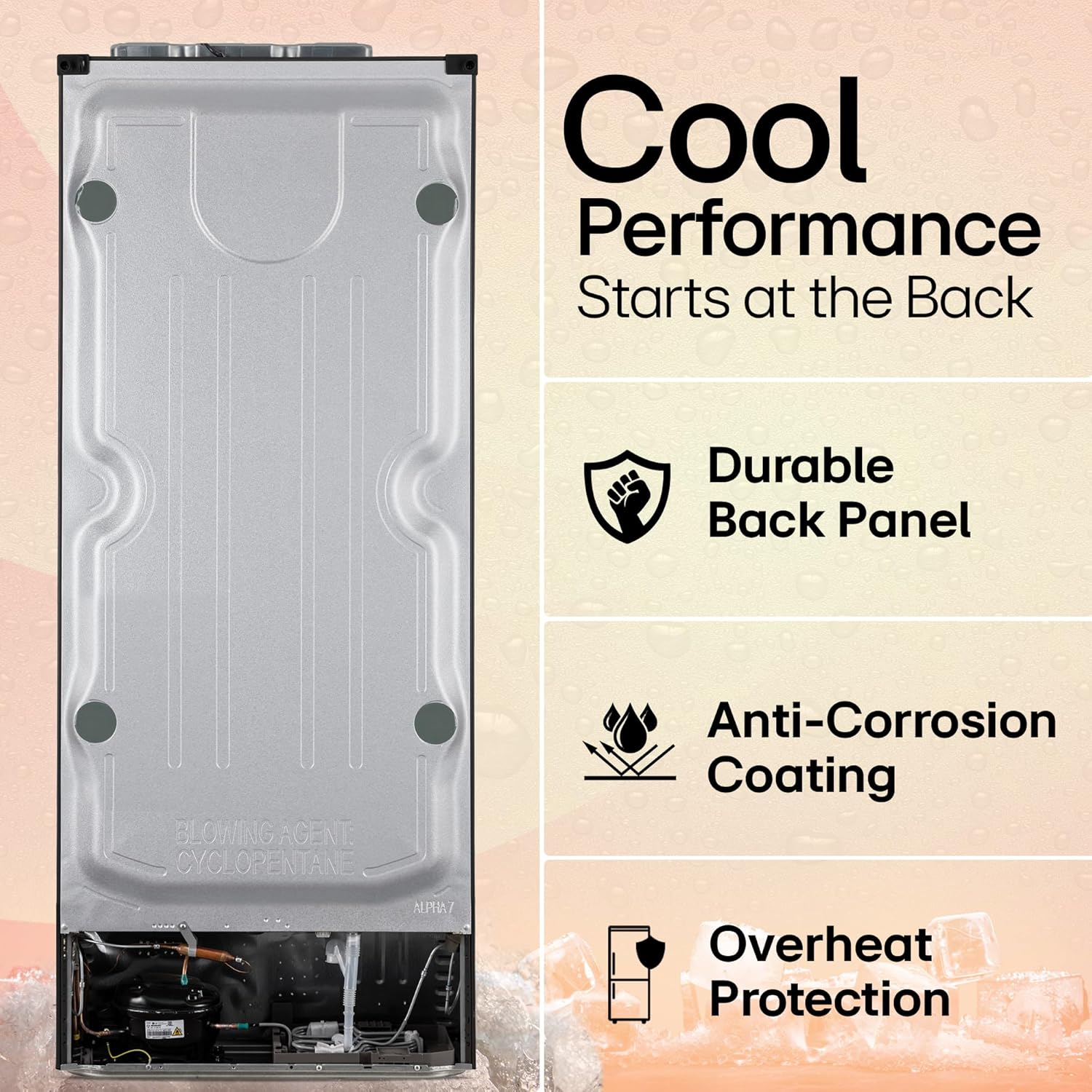 Automatically melts ice build-up in the freezer, preventing manual scraping and ensuring efficient, consistent cooling performance without any mess.